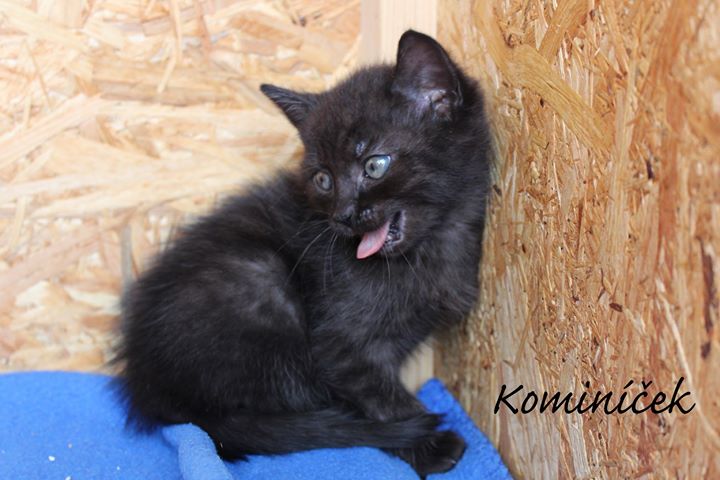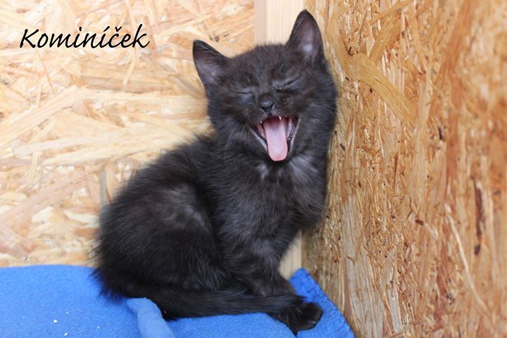 Kočička Odetka a trio černých chlapečků Kominíček, Sazínek a Bubáček (jeho očičko je pečlivě ošetřováno a vše je na dobré cestě.) 🙂