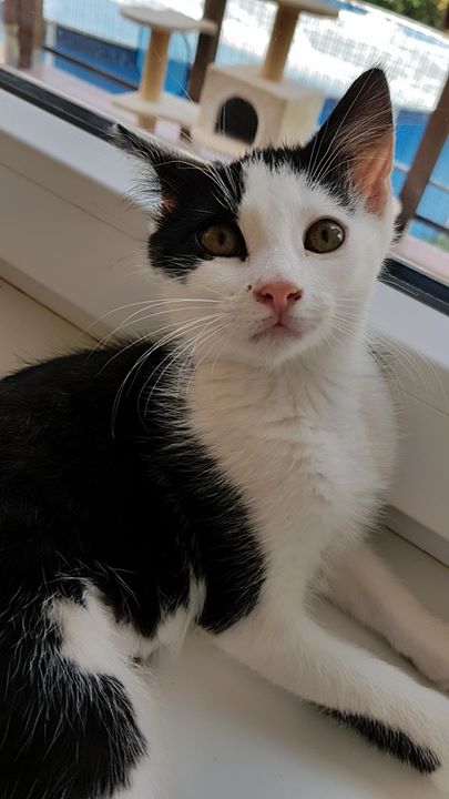 V týdnu přijatá dvě dvě tříměsíční koťátka, černobílý chlape…