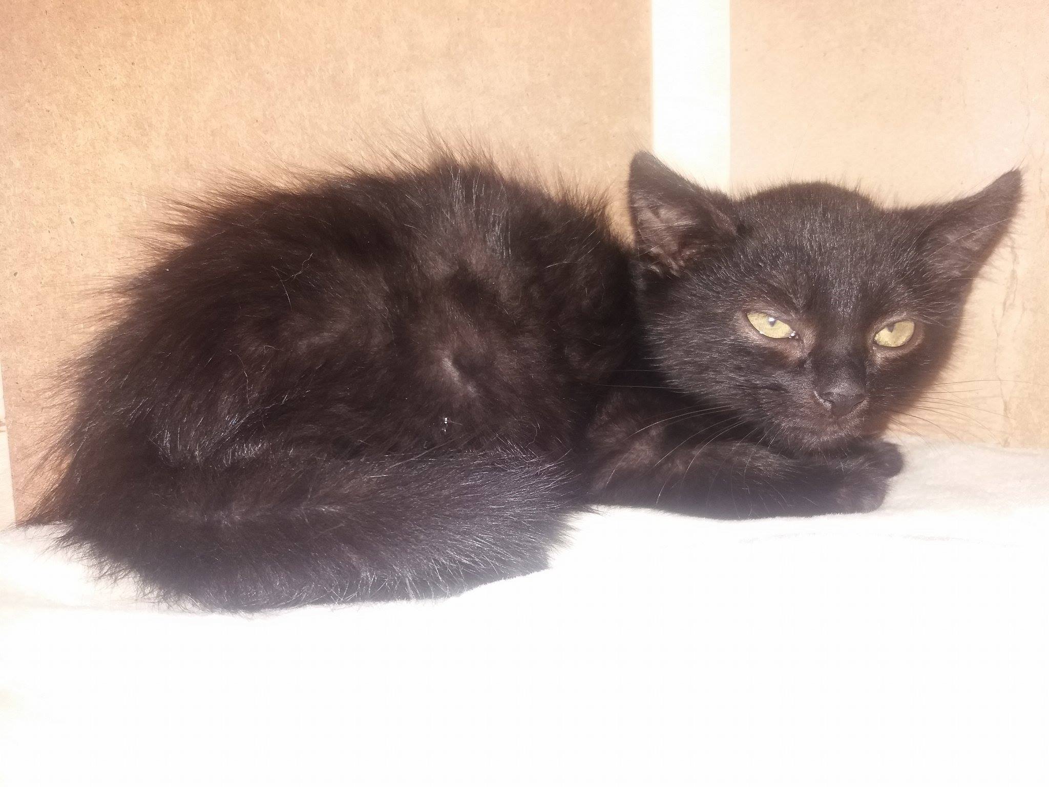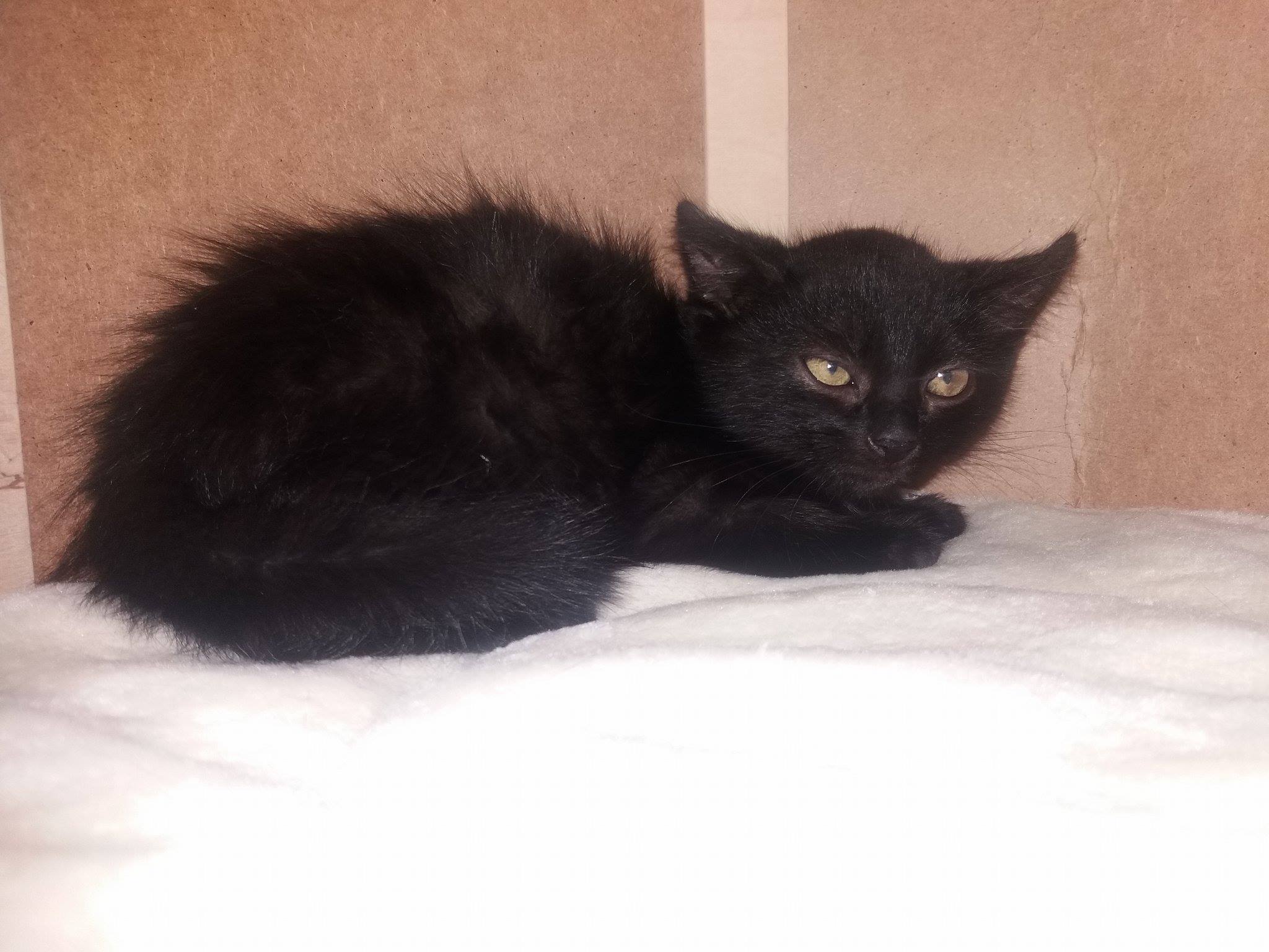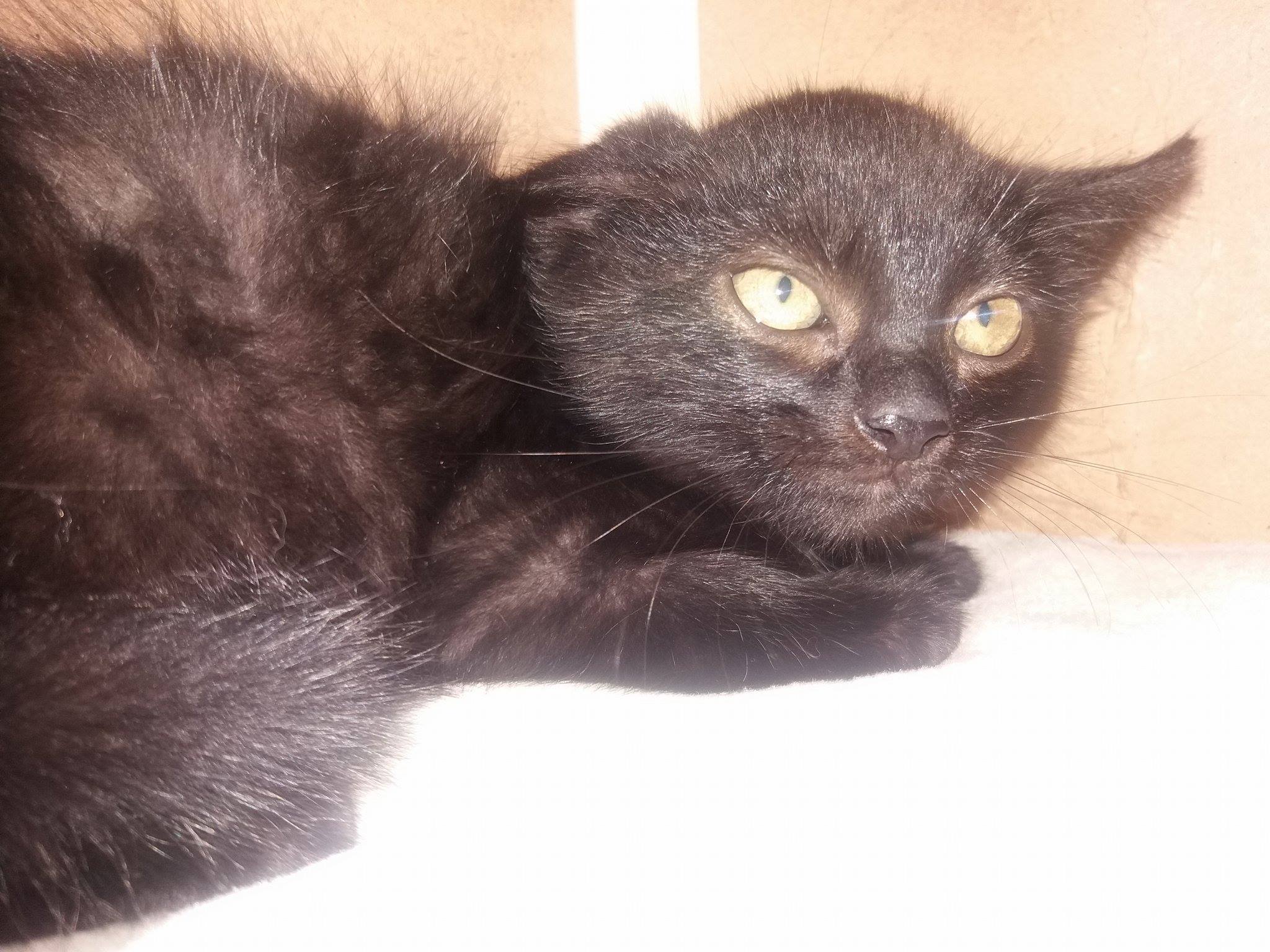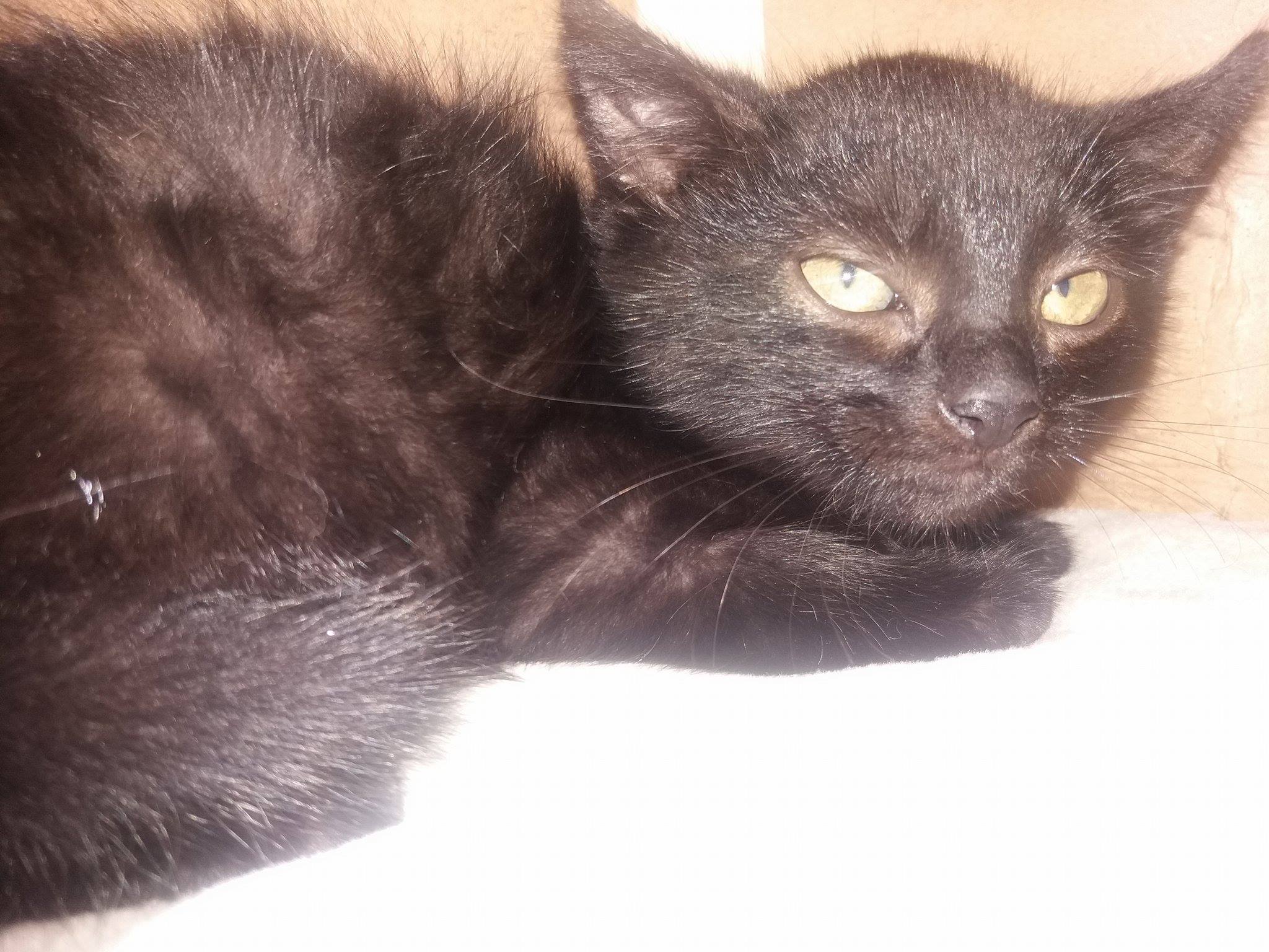 Je to krásný černý kocourek, který je moc plachý. U mne v depozitu je na vymazlení, chviličku to bude trvat, ale půjde to. Kocourek je zdravý, dobře papá. Hraje si s ostatními koťaty.