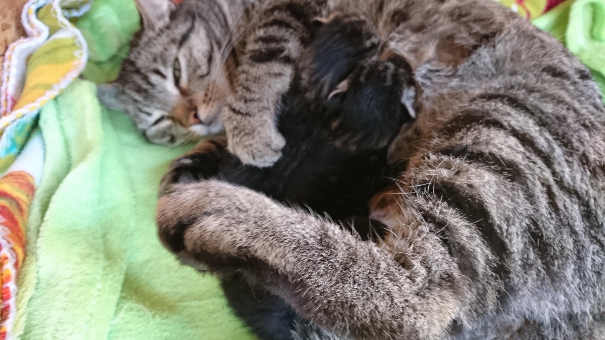 Mramorovaná kočička s bílými ponožkami, kterou jsme přijali s maminku Tulinkou a dvěmi sestřičkami z města Terezín. Tamní radní a městská policie se snaží o kočičky bez domova postarat umístěním do útulku. Postupují správně dle zákona na ochranu zvířat a dle občasného zákona. Velice jim fandím a budu se snažit vyjít vstříc jak to jen půjde. Koťátka byla asi dvoudenní, ještě slepá s pupeční šňůrou.