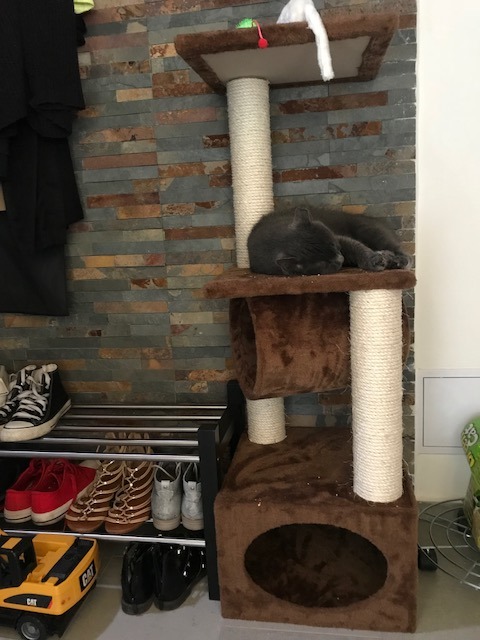 V pondělí jsem mu koupila škrabadlo, které si oblíbil. Má ho v předsíni a vidí z něho do kuchyně. Další pelíšek má u francouzského okna do zahrady, občas tam kouká ven.