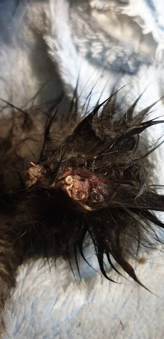 🔸Kocour zůstal na klinice, dnes dostane infuzi včetně ATB a bude mu v sedaci amputovan poškozený ocas a částečně ošetřeno zranění nohy.