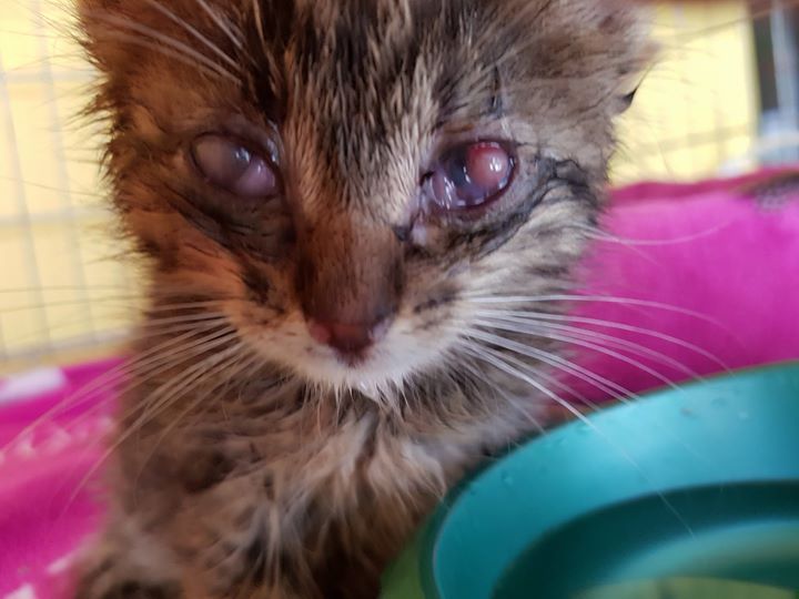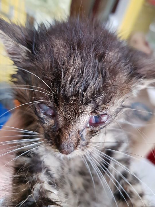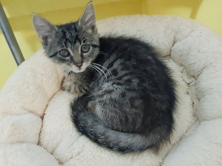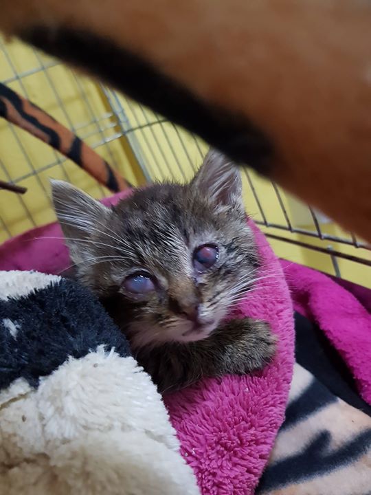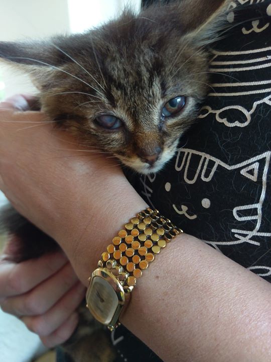 Například jedna z 317 přijatých kočiček – kotě Ešlíček, viz. foto dle času od přijetí do Sluníčka do současnosti.