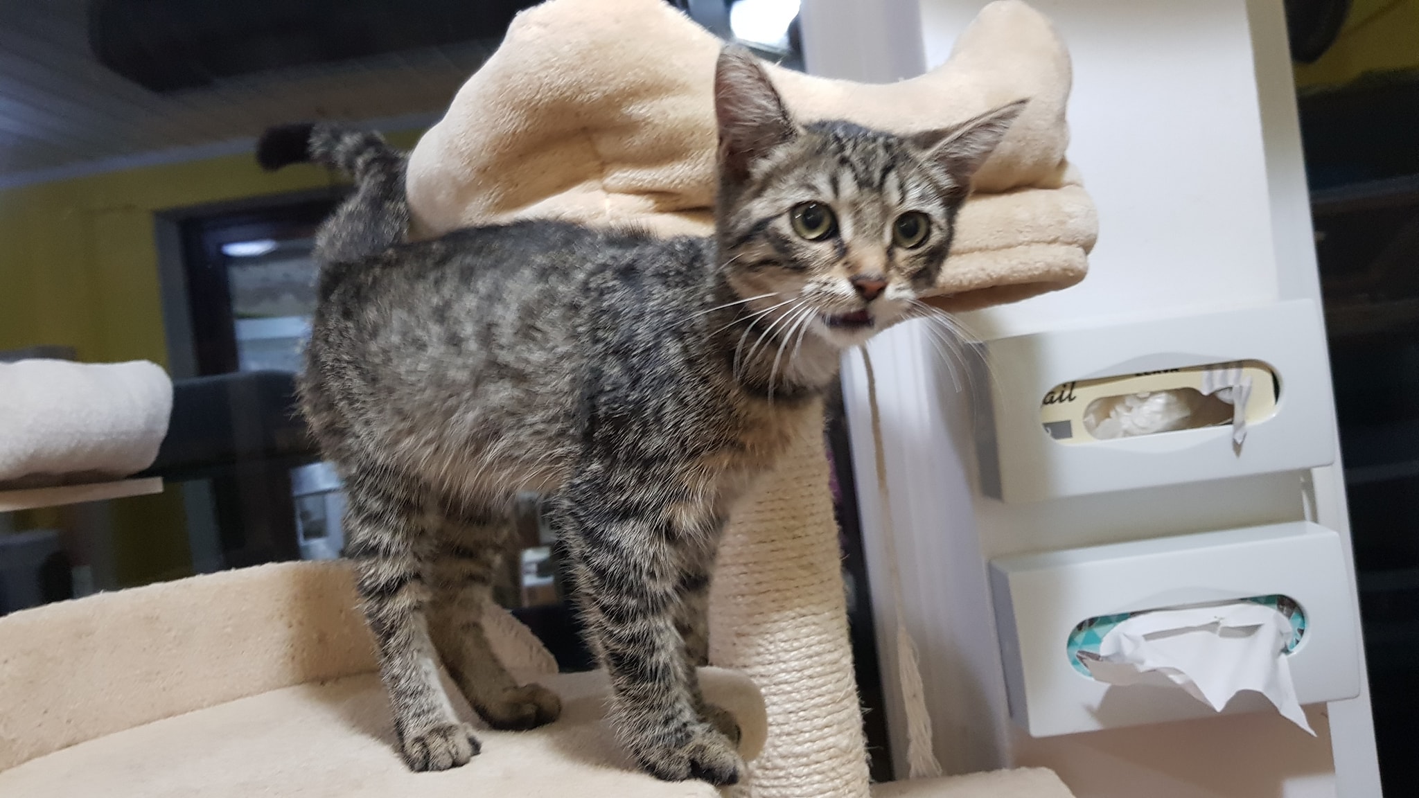 🔸Mourovatému kocourkovi jsou zhruba čtyři měsíce, je velice kontaktní, mazlivý. Možná se najde majitel?🔸Kocourek dostal jméno Taft – Taftík.