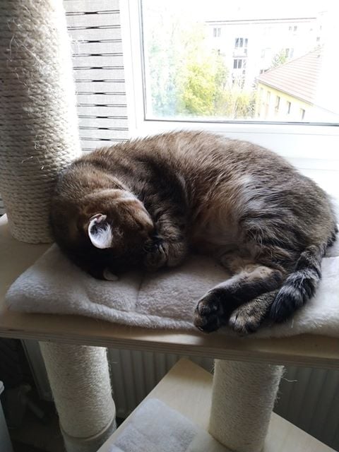 ▪️Dobrý den, posíláme pozdravy od Josefíny (u vás to byla Vilemína). Bydlí s námi už půl roku, z nesmělé kočky se stala mazlivá vládkyně domácnosti, která se nebojí návštěv a skoro ani vysavače.