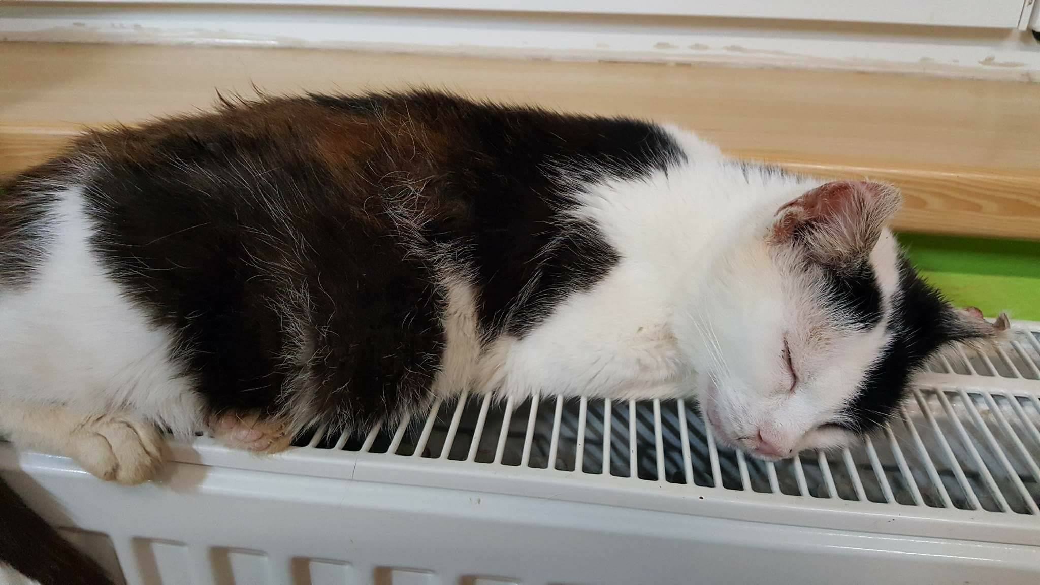 Původní plán byl kočičku jen nechat vykastrovat, vyléčit a vrátit do lokality. Vzhledem k tomu, že si ale užívá teplo a přísun jídla v útulku, není plachá, neměli jsme srdce ji vrátit. Kočička si ráda si vyhřívá kosti na topení, které zřejmě trpěly celý život v zimě zimou.
