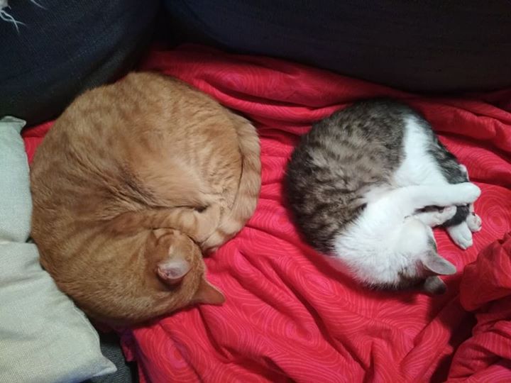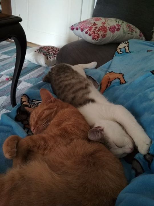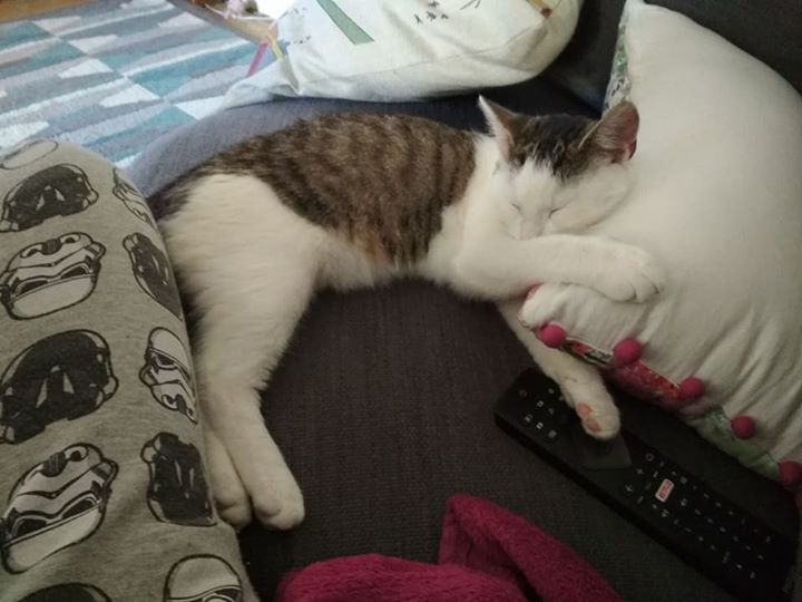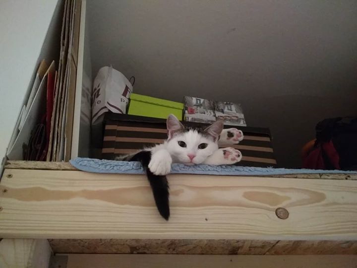 hlásíme novinky ohledně Bodáska. Začali jsme mu říkat Ťupík. Takže největší novinkou je, že pan Ťupík už má za sebou kastraci a zvládnul to skvěle. Všechny předchozí nemoci, jako korona virus, plíseň a následně nastydnutí překonal. Teď už jenom řádí jak Černá ruka, vážně je to neuvěřitelný divoch. Se Zikmundem pořád někde lítají a když Zikmund už nemůže, vystačí si Ťupajz sám se sebou. Hodí ouška dozadu a uloví všechny hračky, které na něj jen letmo pohlédnou. Také si moc oblíbil spaní na patýrku na krabice, které bylo původně Zikmundovým útočištěm, kde se dalo schovat před malou šelmou, než se tam ovšem Ťupík naučil také chodit. Teď tam kraluje on. Poslední z kočičího komanda pan Kocour se nekamarádí s nikým a nikdy. Ale Ťupík se kamarádí se všema a pořád, takže má občas Kocour smůlu a násilím je donucen ke hře či k decentnímu mazlení, na chvíli to přežije a pak znechuceně odchází. Aby to neznělo, že Ťupíček jenom zlobí, je to také obrovský mazel a všechny mezery mezi lovem plyšáků, dek a brček, jsou vyplněny chováním s námi. Posíláme pár fotek, jak to Ťupíkovi sluší, když spinká.