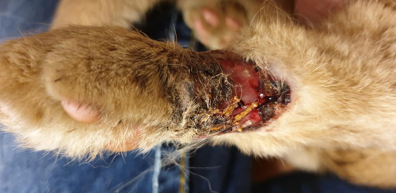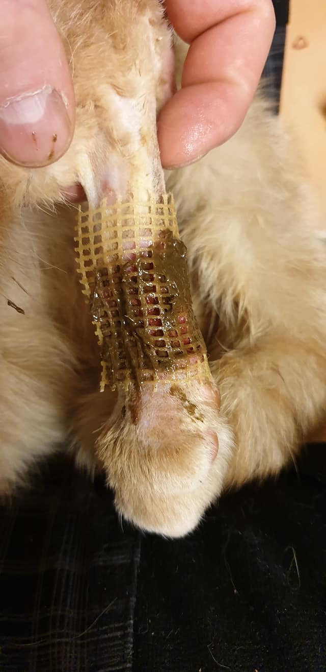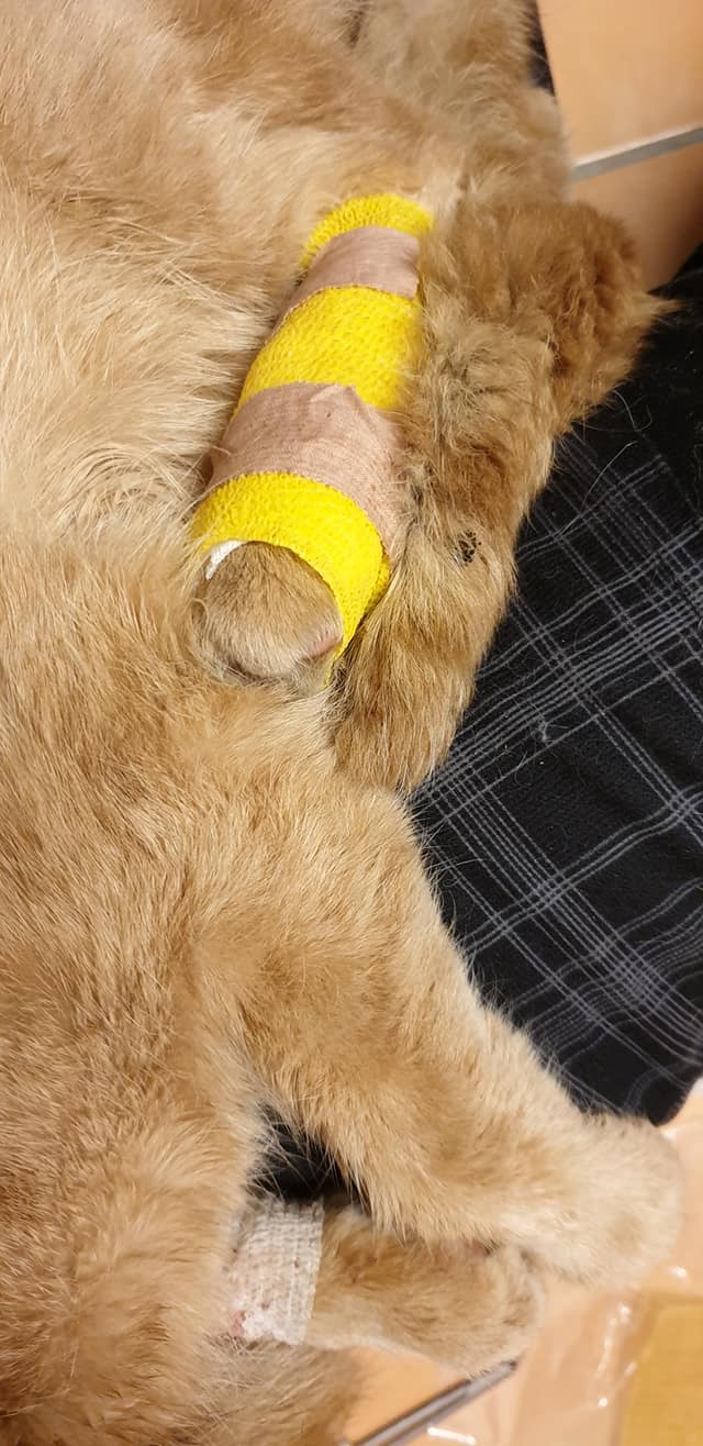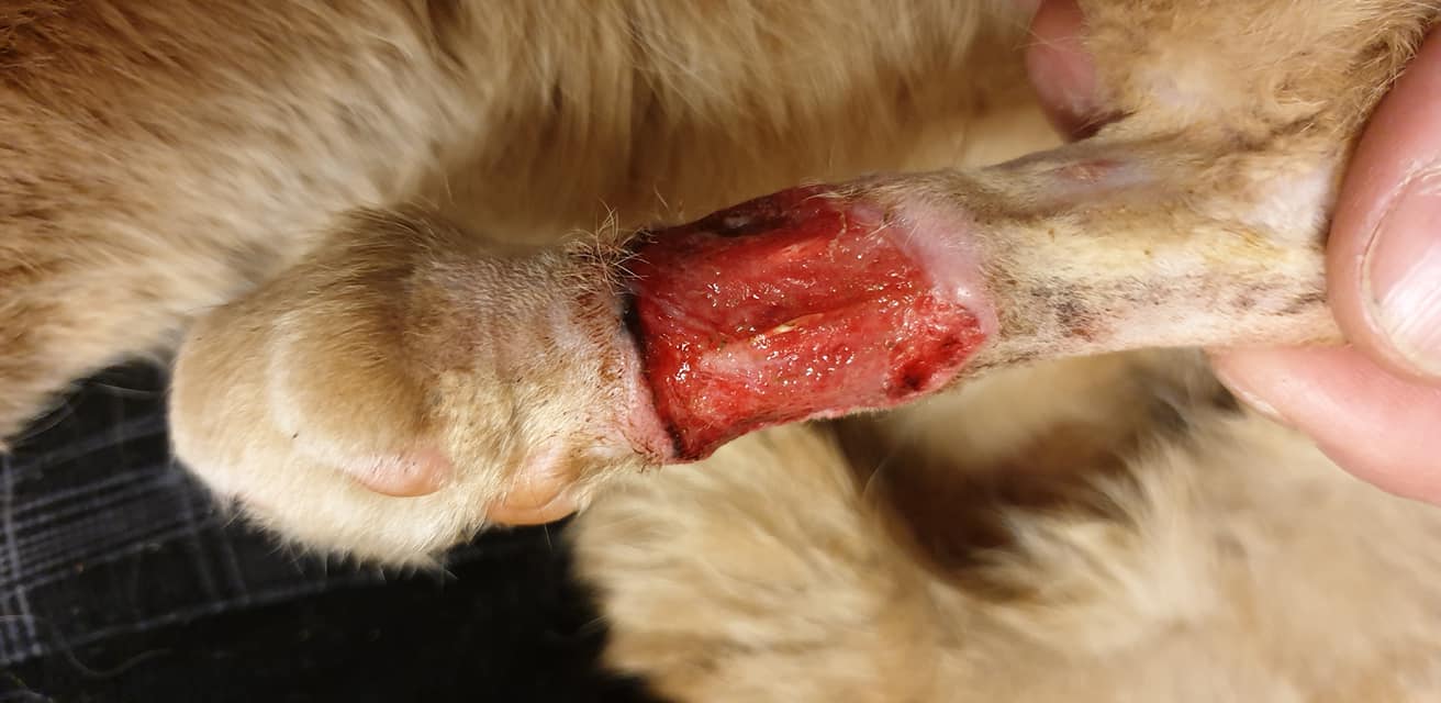 🔸Tkáň na noze byla již nekroticka, je hluboká a velká. Rána byla vyčištěna a musíme každý den prevazovat, čistit a mazat.