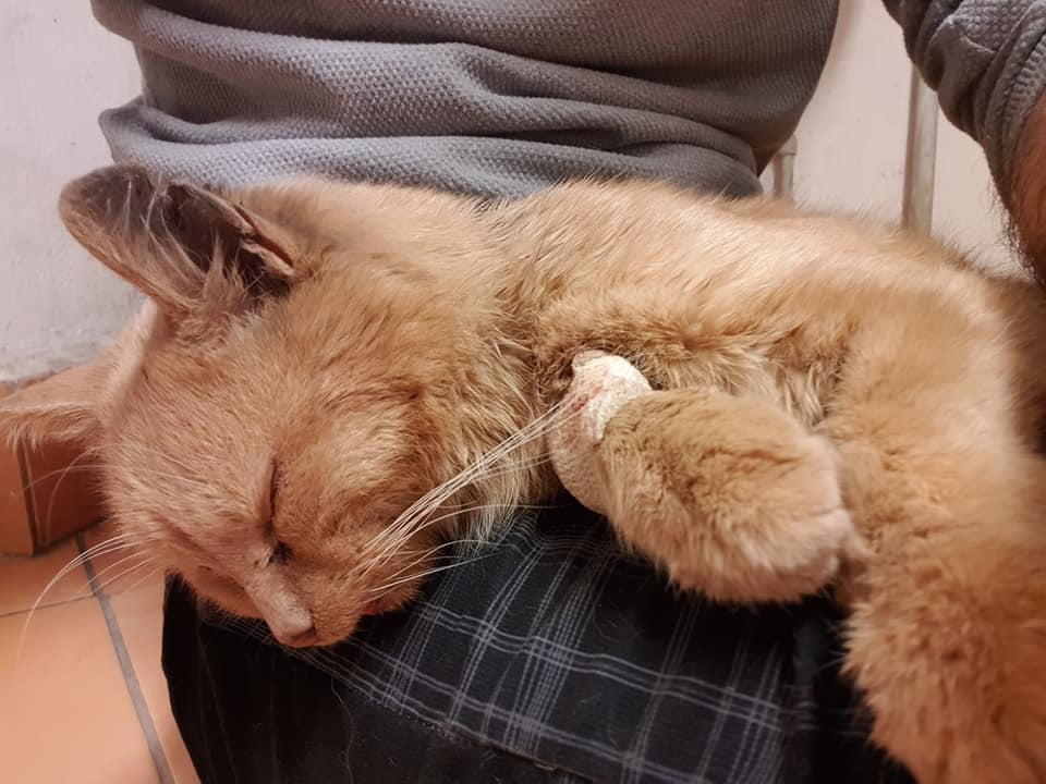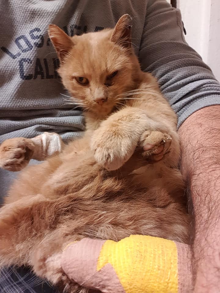 Naštěstí kocourek i když je celý bolavy a zatím smutný, úžasně spolupracuje.