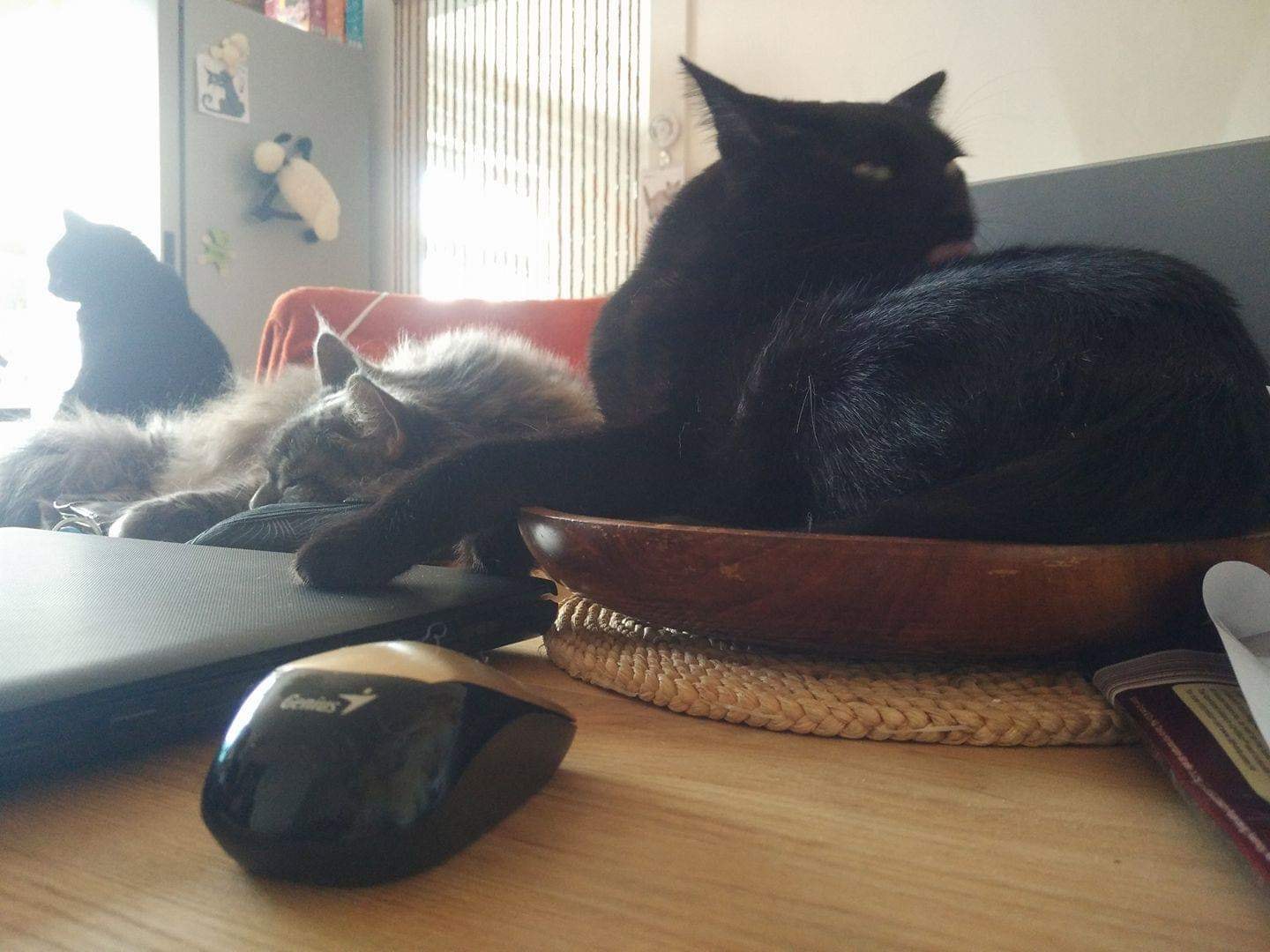 protože vím, že Vás to potěší, tak se po čase ozývám se svými svěřenci Yasmínkou – (Dádinkou) a Nickem – (Popelníkem) Oba jsou černoši, tak nevim jestli je rozeznáte Mysllm, že kdyby Vám napsali oni, napsali by, že se maj dobře a domácí jim poctivě slouží. Občas se spolu pohádaj, ale mezi náma jejich starosti a život bych chtěla mít Před třemi roky jsem se stěhovala, to bylo pro ně náročnější, ale teď už jsou zase cajk. Mějte se dobře a těšte se z toho, co děláte, posílám foto dvou Vámi zachráněných chlupáčů (ten třetí je chtě/nechtě musel adoptovat )