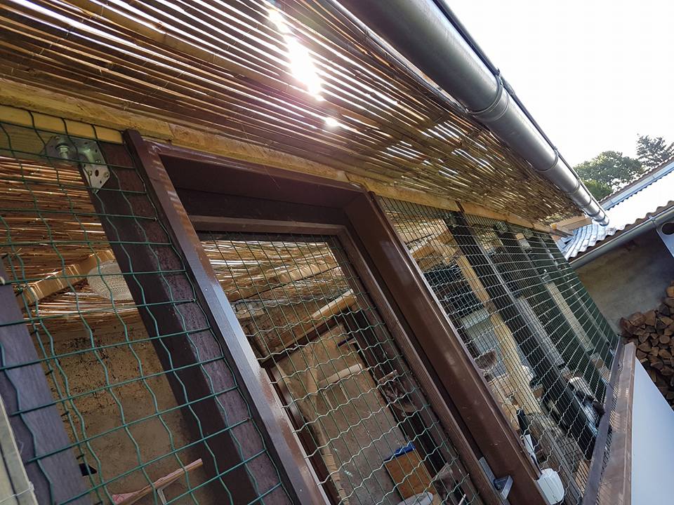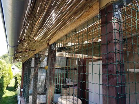Zastíněná voliéra proti sluníčku pro Šimonka, Charliho a Chroustíka. Už je konečně nebude sužovat veliké horko. Můžete finančně přispět na zastínění dalších voliér. Děkujeme.