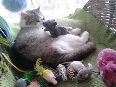 Zdravím všechny ve SLUNÍČKU. Dobrala jsem antib. a bříško po operaci mám zcela zahojené. Tento týden užívám sirůpek na ouška. Jinak se mám úžasně a posílám Vám fotečky … jak si lebedím v květináči a pak sbírku myšek. Mějte se krásně mňauky mňau Rozárka (Krasomila)