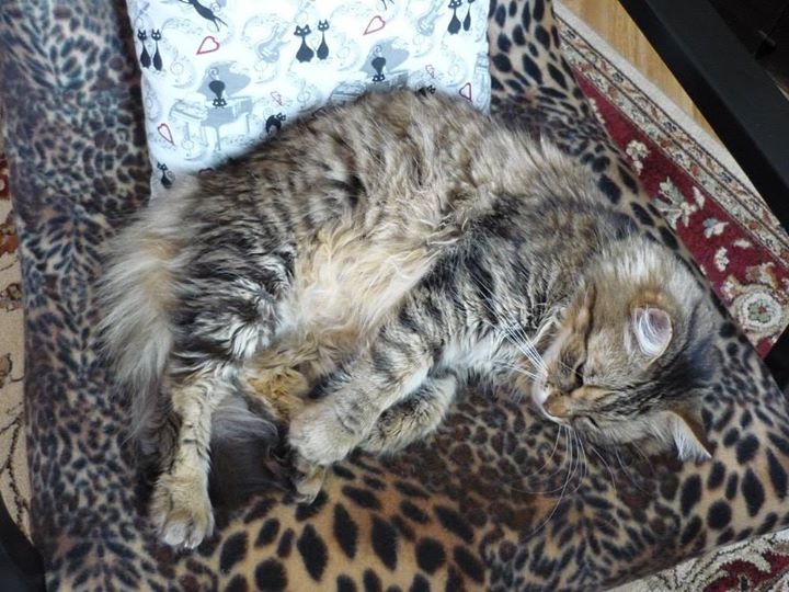hlásím, že si letní neděle docela užívám. Vstávám s rozedněním, co na tom, že dvounohá by si přispala. Zato jí pak poctivě hlídám snídani na stole (to já už mám dávno plně bříško). Pak následuje chvíle tělocviku na škrabadle a větší část dne relax na křesle – nebudit, prosím.