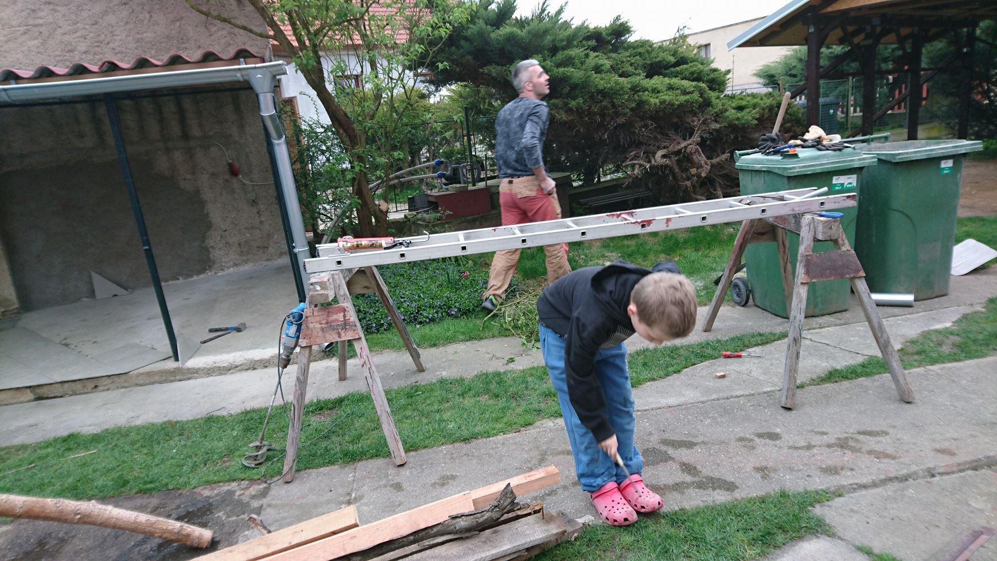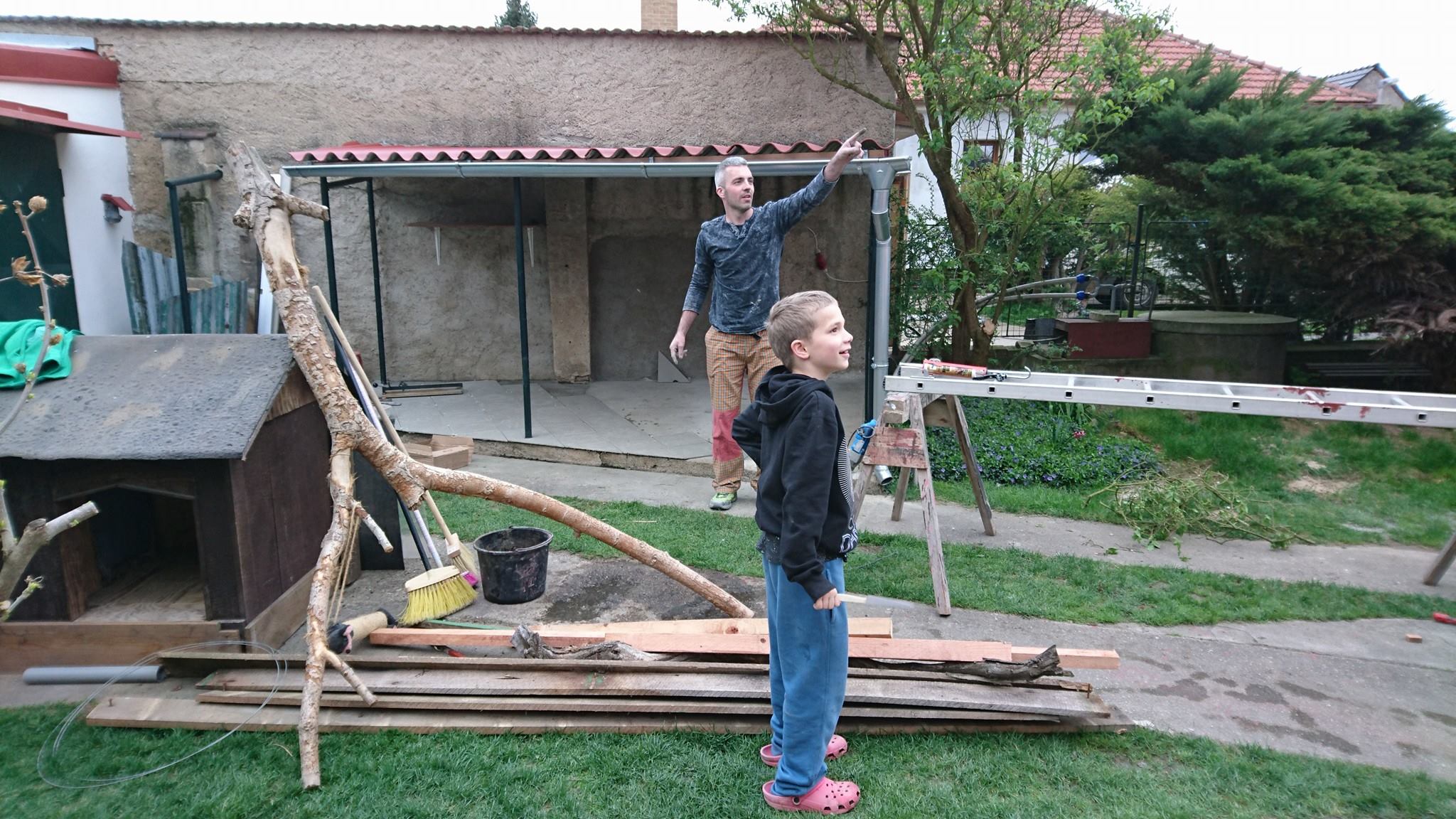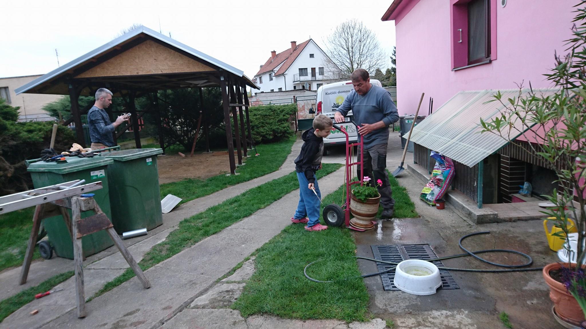 Jaro ve Sluníčku je opět ve znamení stavebních prací. Kluci – Standa a Michal předělávají voliéru u garáže. Byla stará, i když nám pomohla odchovat dost koťat. Bylo potřeba předělat pletivo, položit dlažbu, aby se dala podlaha vytírat a desinfikovat. Voliéra už se rýsuje. V pátek pomáhal klukům ještě Sluníčkový Tomášek.
