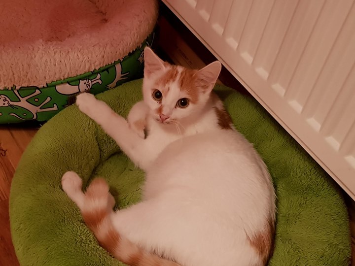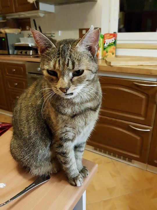 Kocourek Vestík je veliký jedlík, zřejmě i proto, že má řídkou stolici. Zatím byl znovu odčerven.