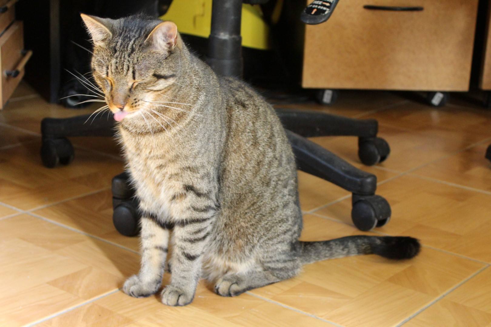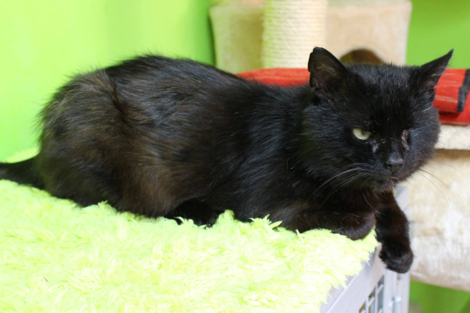 Kočička Ofélie, která má zapadlé levé očičko, tak to ji dneska začalo zatékat. Jsou to samé jobovky. Takže nás čeká veterina.