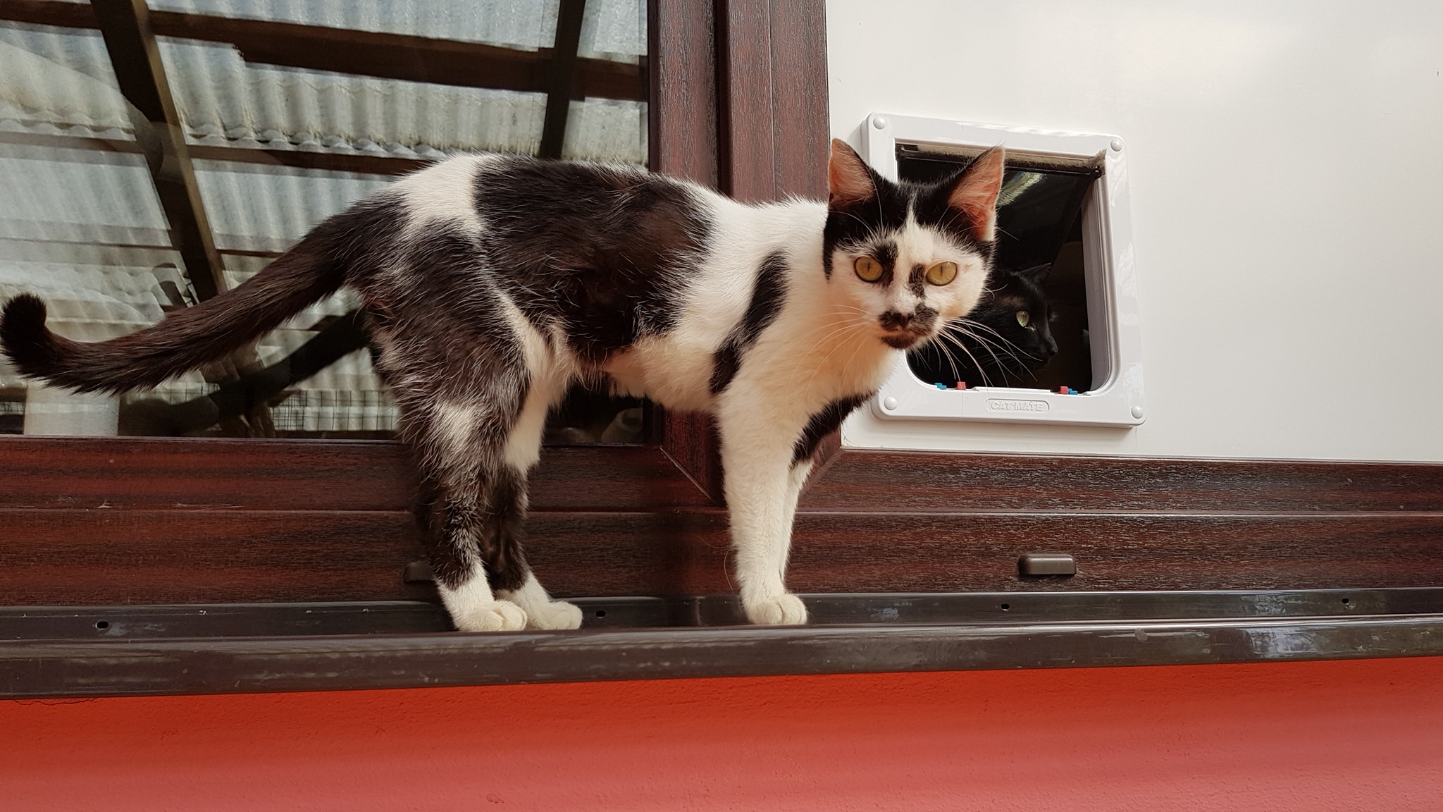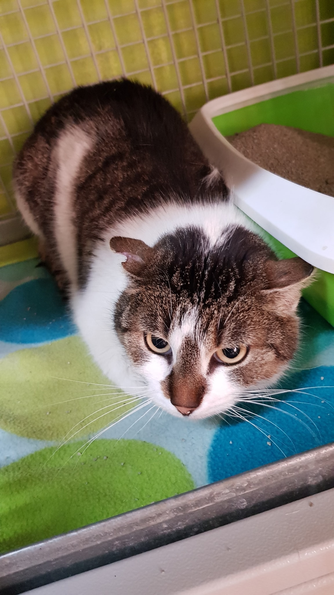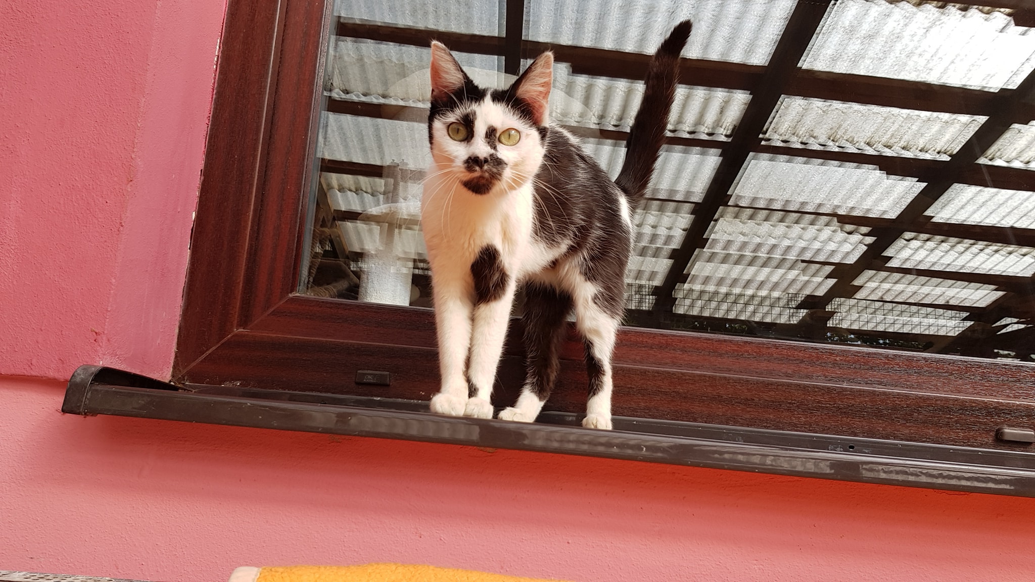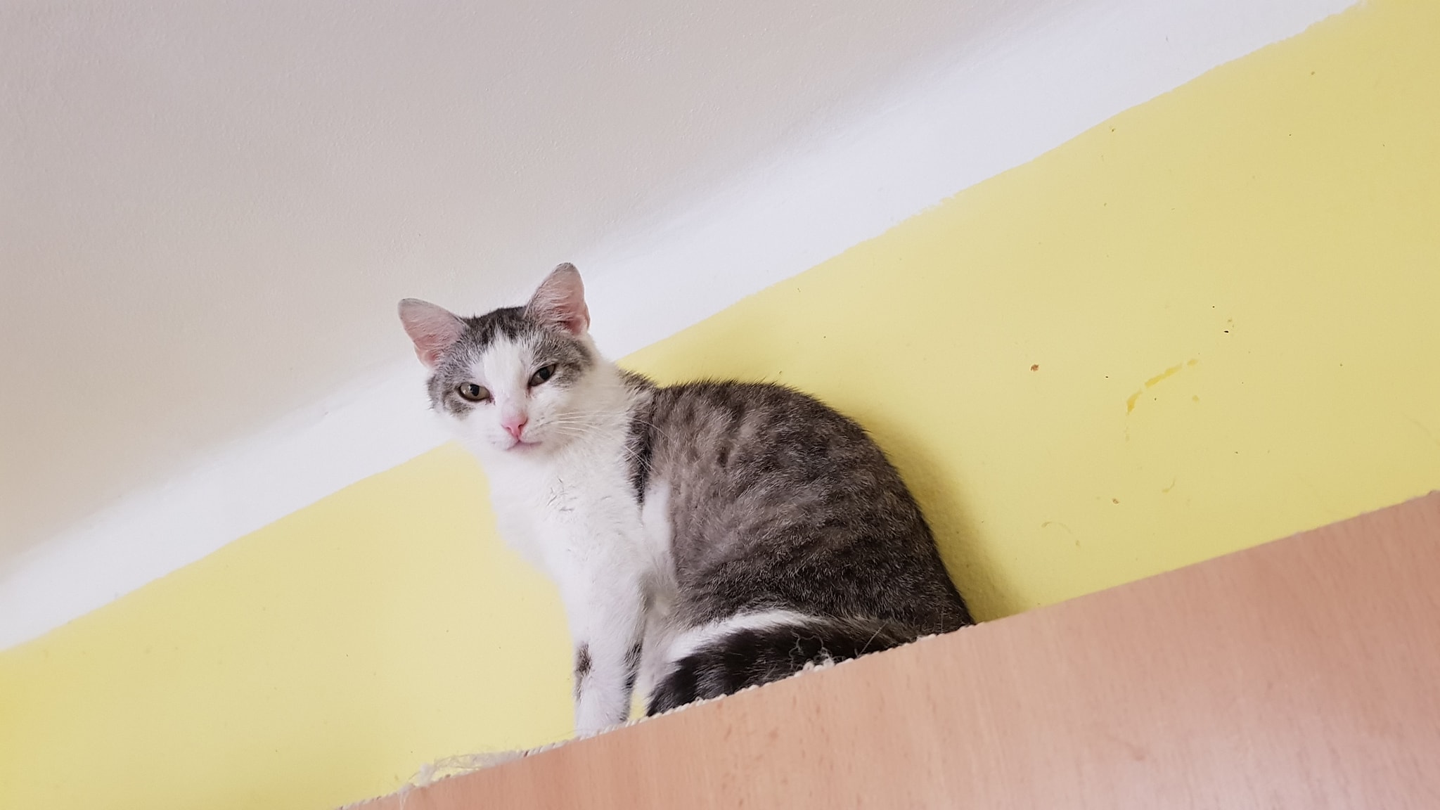 Bílomourovatá kočička z Hoštky, absolvovala kastraci již v roce 2015, v zahrádkářské kolonii se jí daří velice dobře. Tehdy přišla do Sluníčka nemocná, uzdravila se, byla vykastrována a byla vrácena do zahrádek. Nyní byla opět odchycena a přeléčena antibiotiky. Trošk chrčí, zřejmě má poškozené nosní přepážky, což jí však nijak nevadí. Pobyt u nás nesnáší moc dobře. Vyrostla z ní však mohutná kočička, která o víkendu poputuje zpátky, kde je zvyklá, kde se jí daří a je zde šťastná.