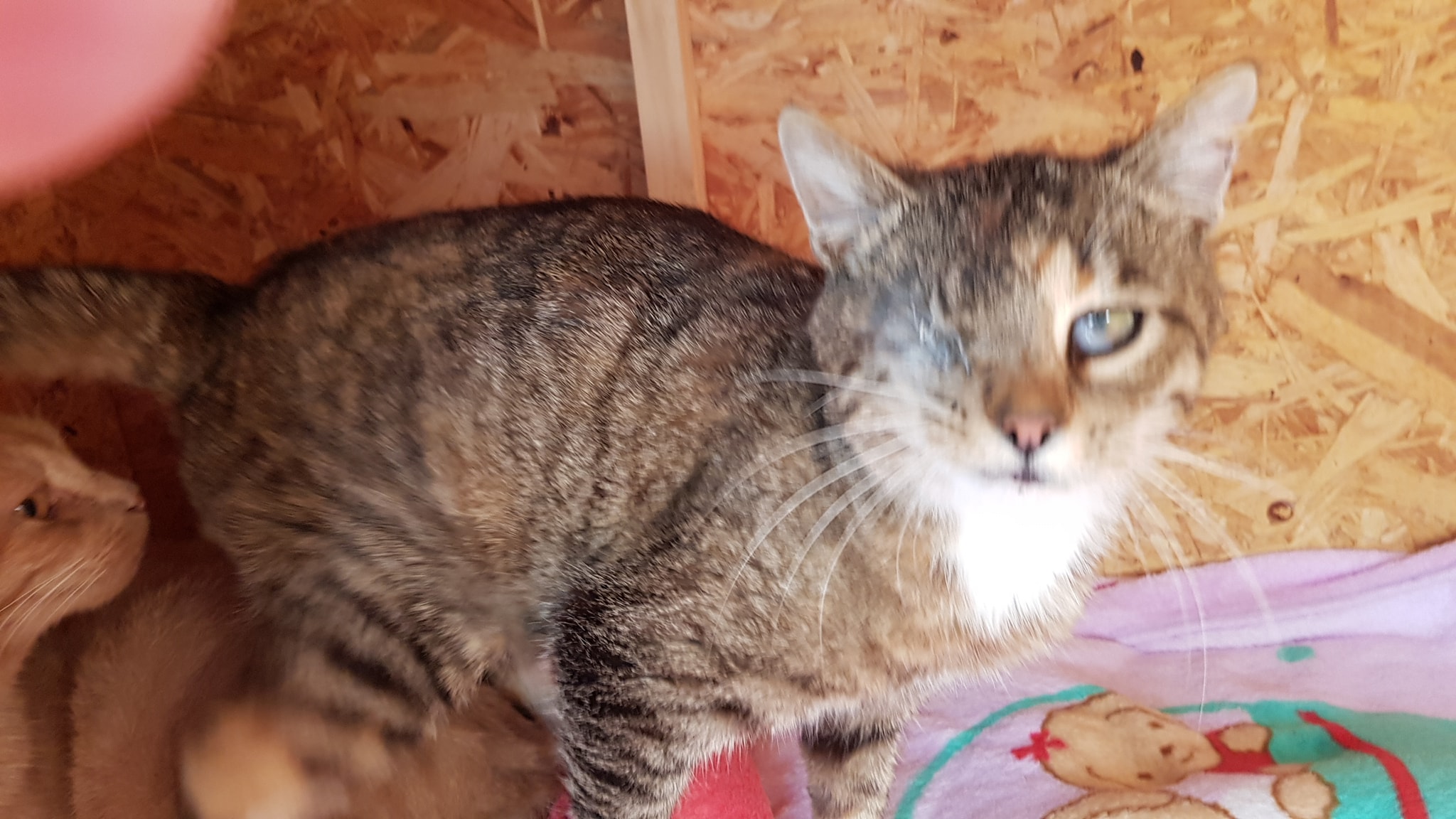 Mourovatá kočička s rezavou Beky byla konečně odchycena a vykastrována. Kočička se potulovala v poli na konci Kostomlat pod Řípem se zraněným očičkem, které muselo být zašito. Bekynka je hodně přítulná kočička, chybí jí však téměř všechny zoubky, bude už trochu starší.