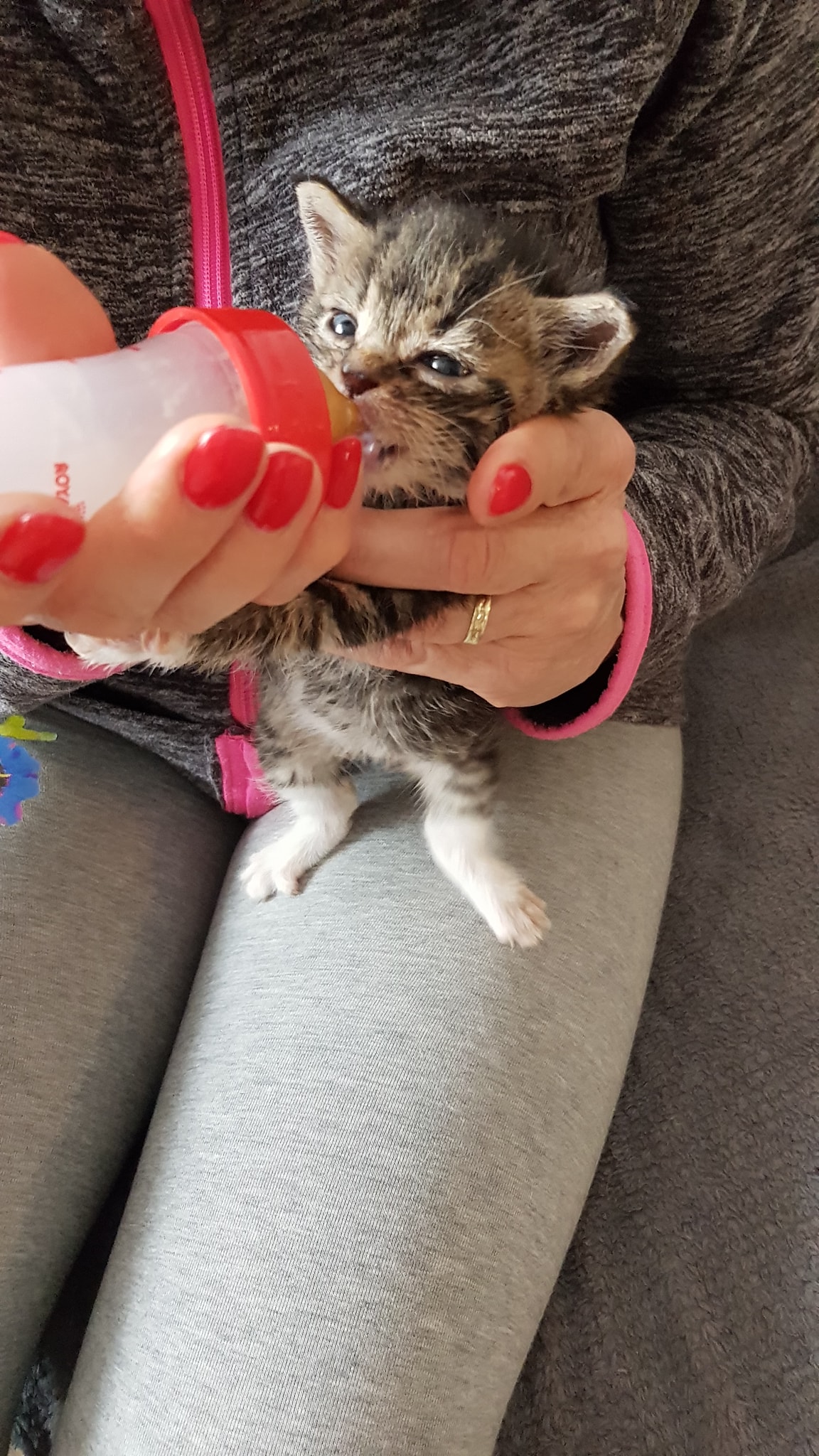 Nejmenším přírůstek Sluníčka je mrňavý Zeusek. Je to nádherné miminko, které přišlo s váhou 310 gramů. Tak vehementně se snažilo upíjet konzervičku, bylo to dojemné, spíše k pláči, jak byl brouček maličký a hladový. V konzervičce se doslova koupe. Konečně začal cucat i mlíčko z lahvičky, ale dostal z něho průjem. Je sladký, milý, prostě přenádherný. Byl nalezen na kraji silnice na konci obce Rohatce.