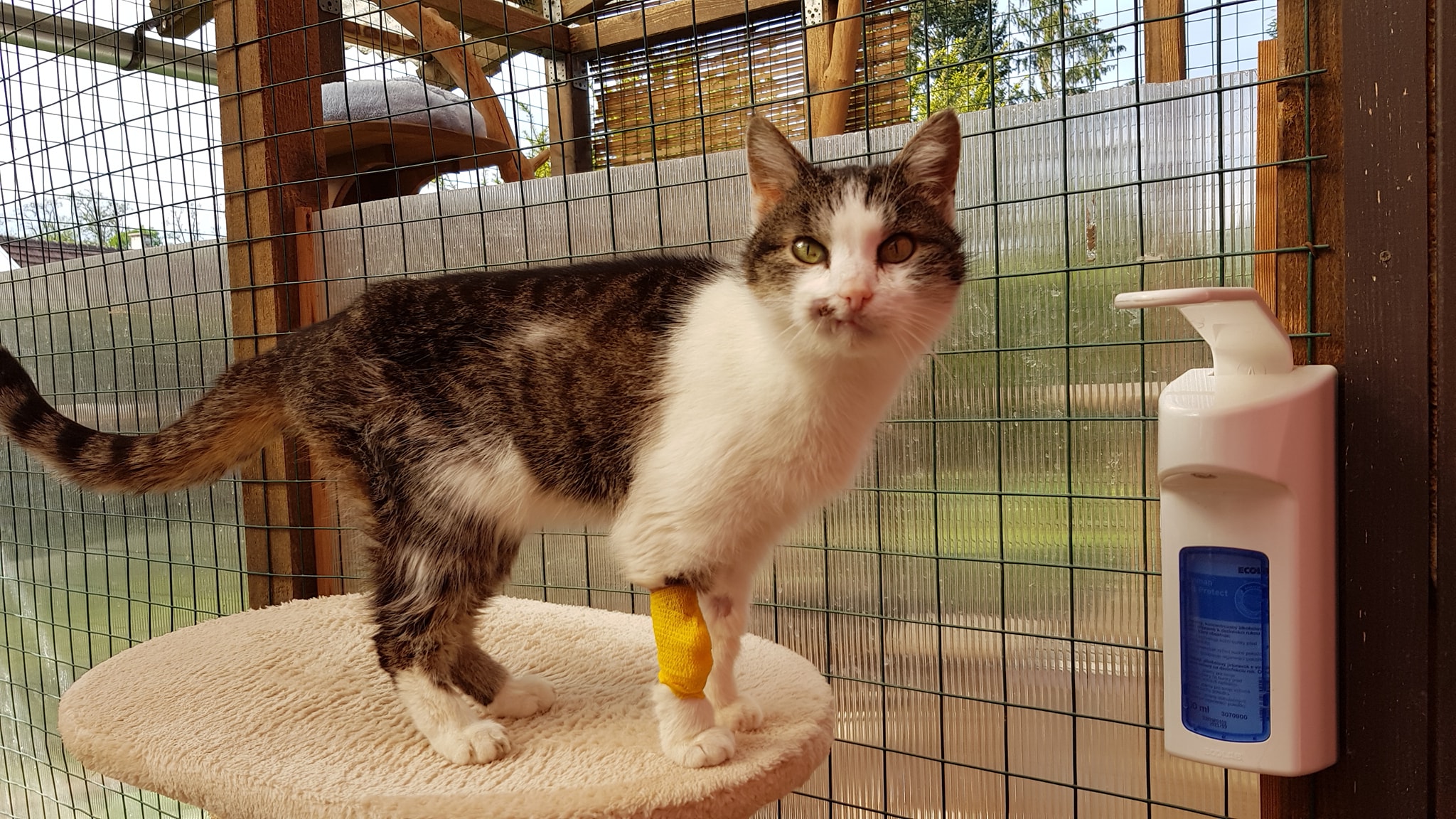 Rezavý kocourek Warrior, který se dlouhodobě léčí z ošklivého zranění nožičky, byl včera opět na reoperaci. Kocourkovi se jinak daří dobře, váží již 5,15 kg.