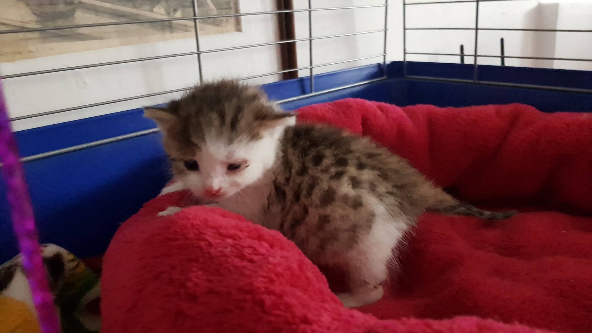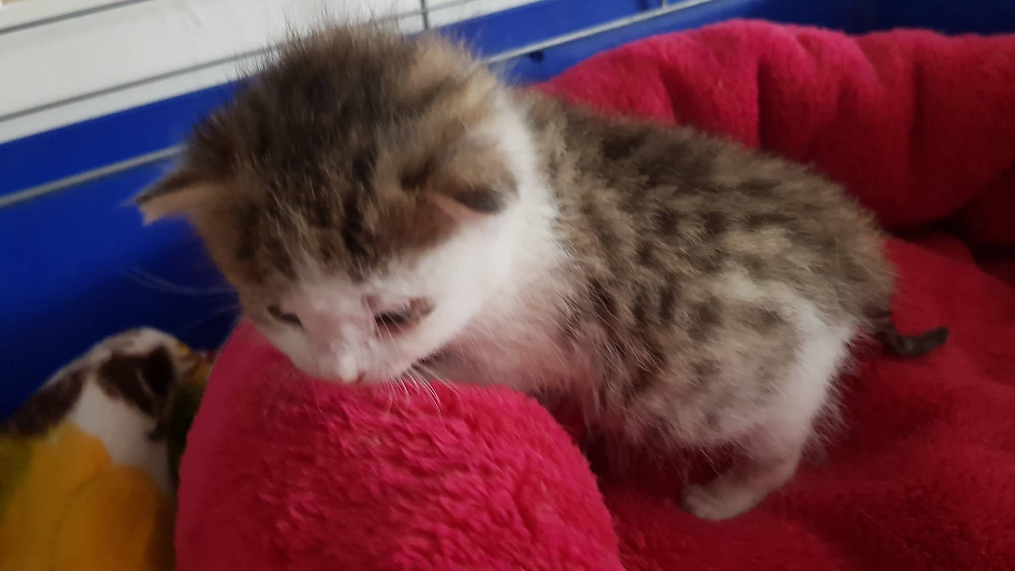 Malý kocourek Brumík pohubl, polehává, další trošku „padlé“ kotě. Léky, hlídání malého, vypadá to však, že to bude dobré.