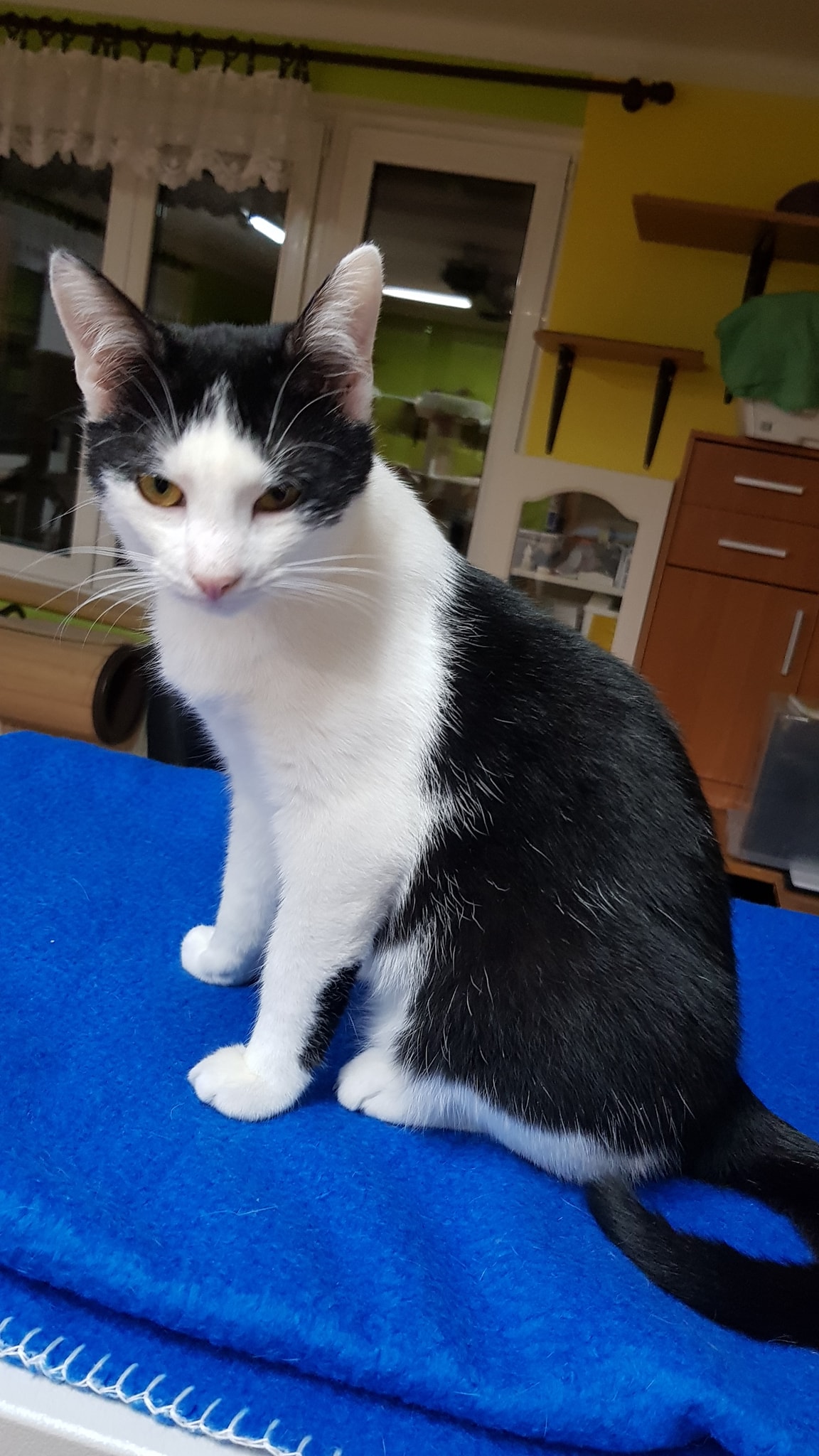 🔶Kočička Blondýna vyžaduje bydlet v celém domě. Z klece se přestěhovala do malé místnosti, pak do velké, kde ji pobyt vydržel tak dva dny a začala se domáhat jít do bytu. V bytě hodně prudí stávající kočičky a začala sedávat u dveří ven, takže putovala zpátky do velké místnosti. Vyhledává mazlení, hlazení, chodí za mnou. Dlouho ji trvá, než získá ke konkrétnímu člověku důvěru. Standa ji dokáže i přenést z místnosti do místnosti.