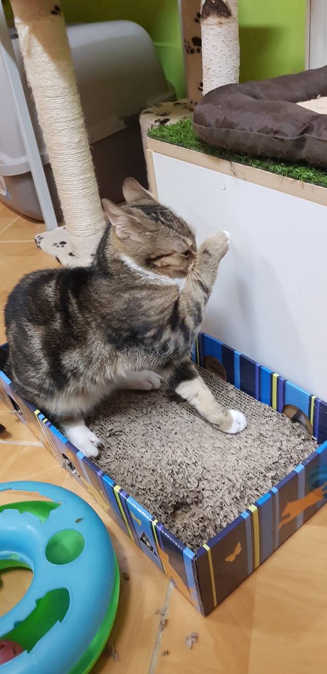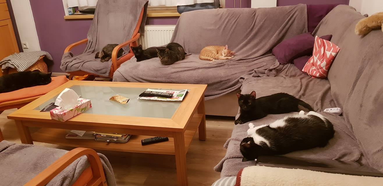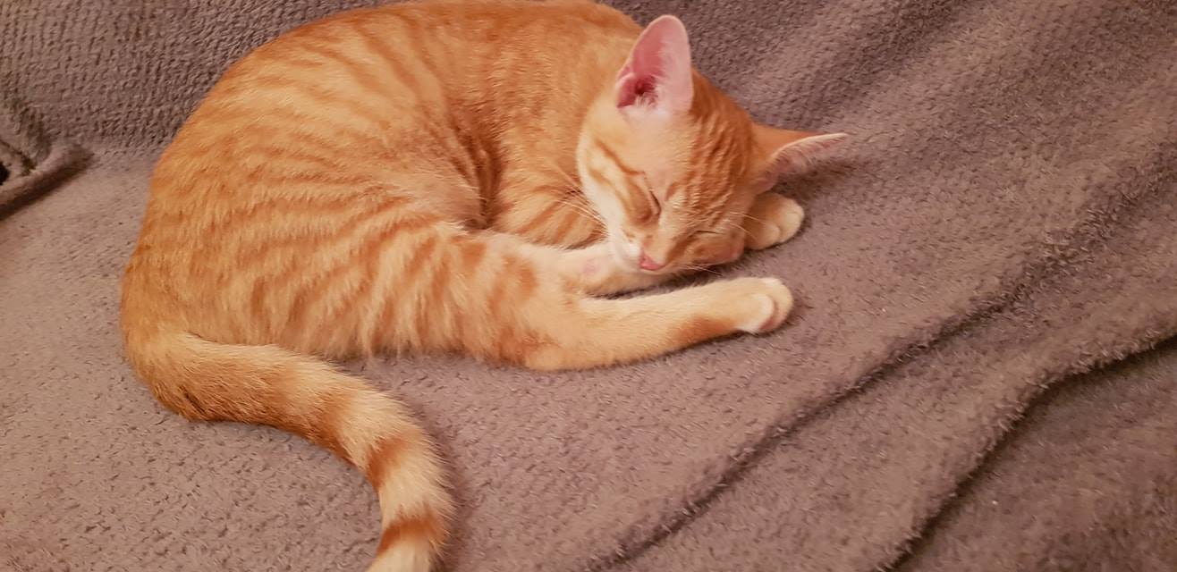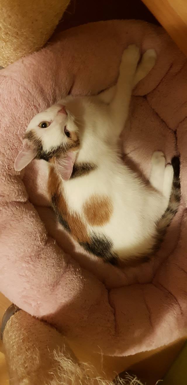 Koťata Meda a Kaira byla přijata z důvodu špatného zacházení v domově, kde bydlely holčičky po té, co je zachránila paní, která je našla i s jejich maminkou v jedné obci. Koťátka byla maličká s vystupující páteří. Z důvodu karantény v útulku, byly Meda s Kairou umístěny do depozita u Jitky. Jsou tam již druhý týden a za tu dobu jednou tolik znásobily svojí váhu.