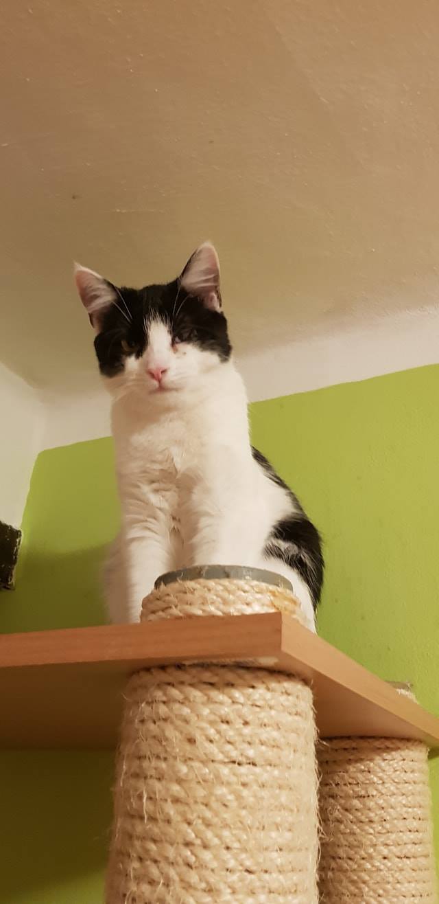 Náš nejmenší kocourek Dortíček je asi slepý. Hodně baští, přibývá na váze, což je dobře, má co dohánět. Užívá léky a byl objednán ke specialistovi na vyšetření očiček. Málo se mu zužují zorničky a nereaguje na mávátko. Je tak strašně sladký, mazlivý.