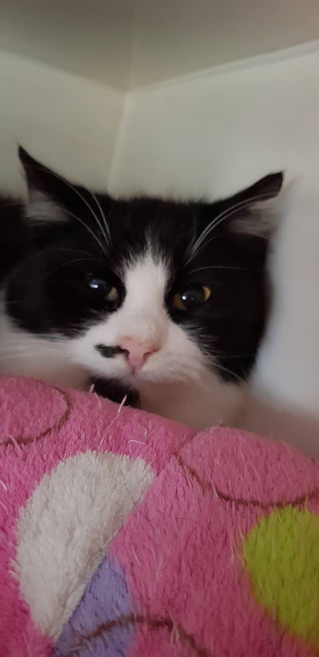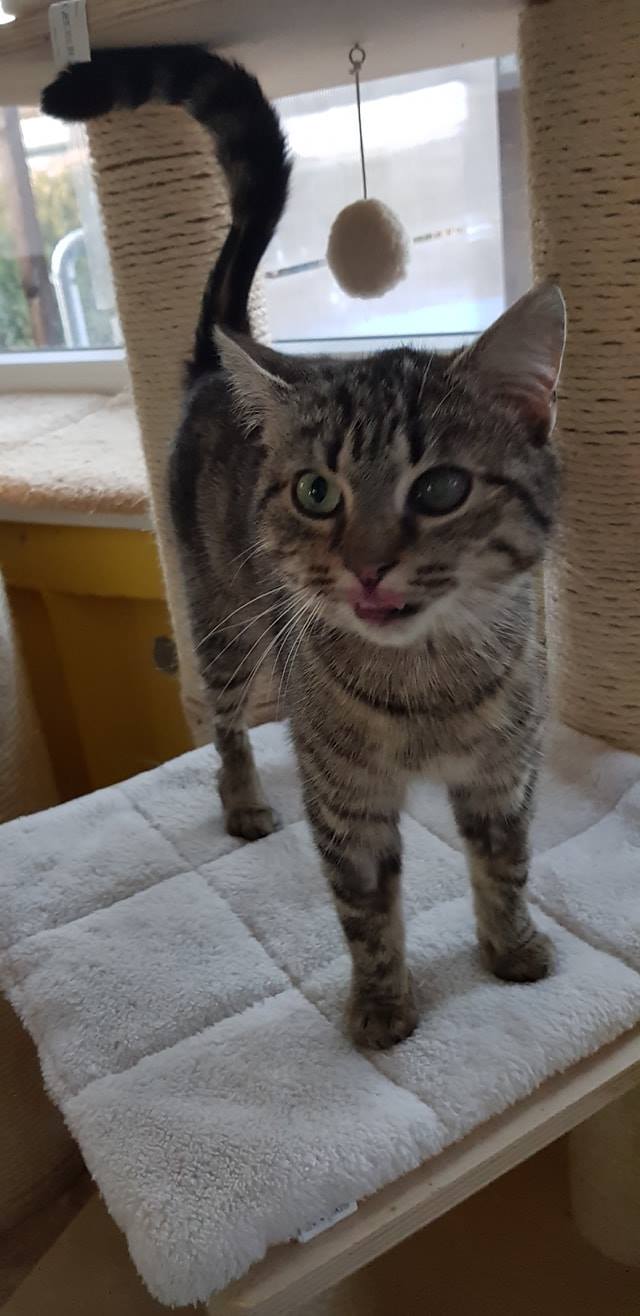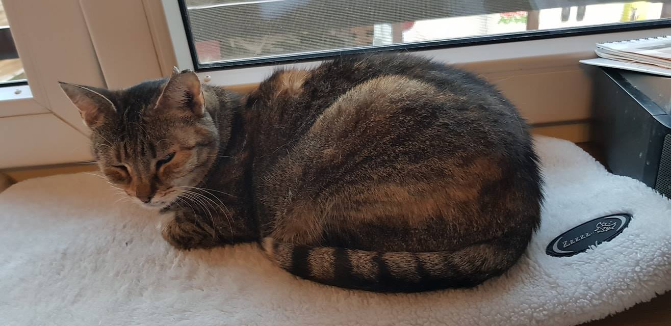 Naše mourovaté štěstíčko Vestička, kterou jsme nemohli dostat z úporného průjmu, je už konečně bez průjmu a dobírá léky na rýmu. Přišla k nám se zakaleným levým očičkem, to je však klidné a zákal je trvalý. To ji však vůbec neubírá na kráse. Je to moc milá, hravá a abnormálně mazlivá kočička.