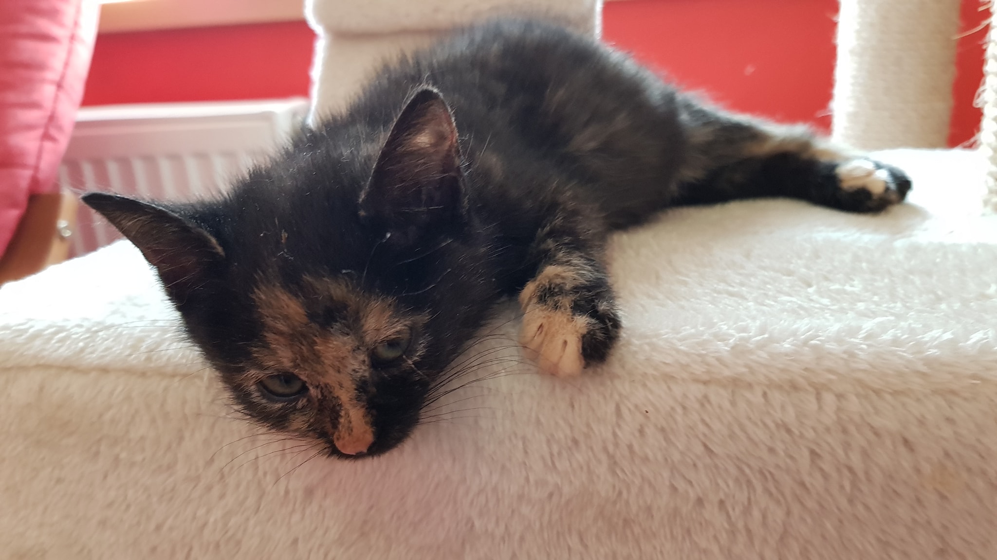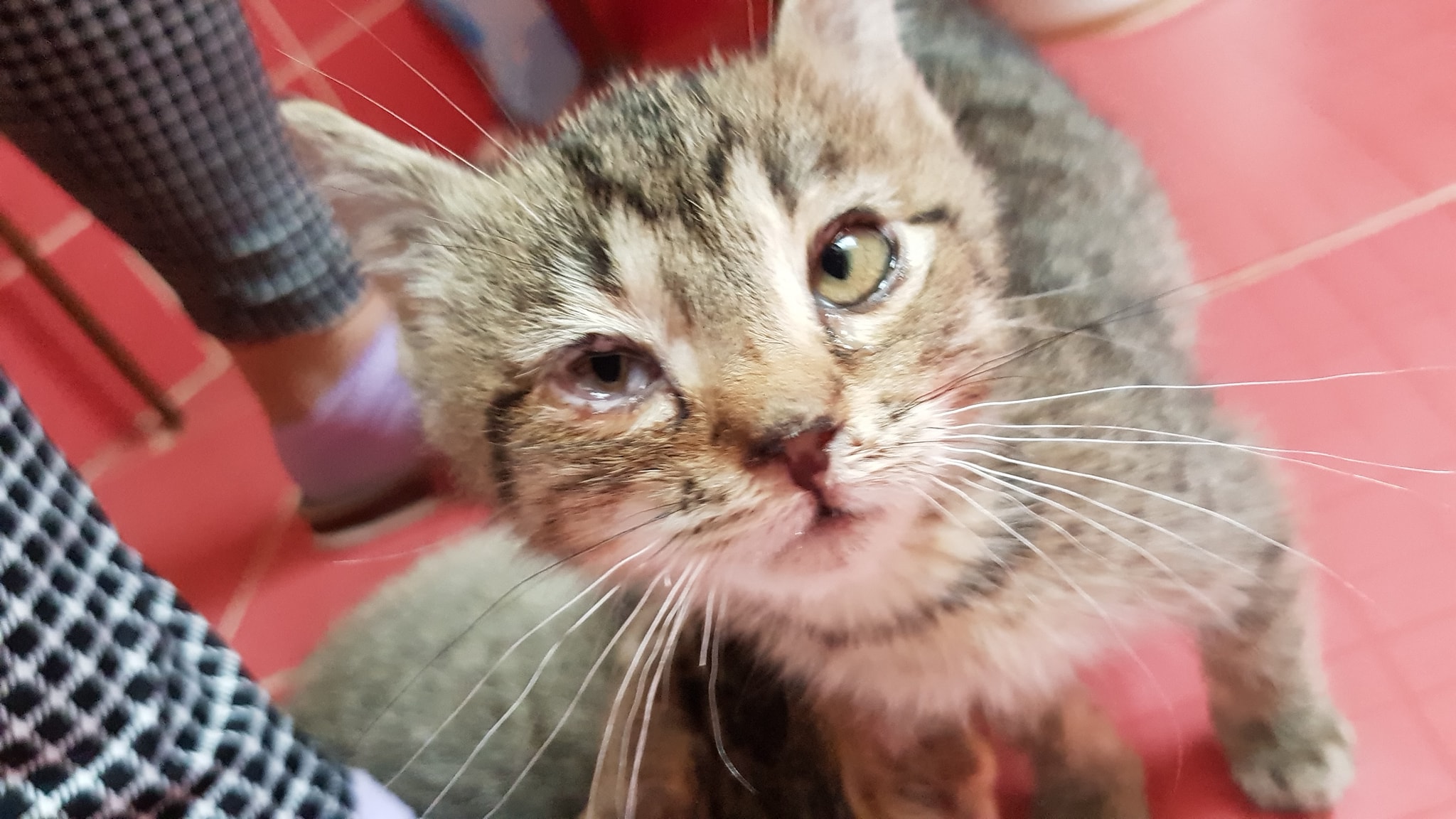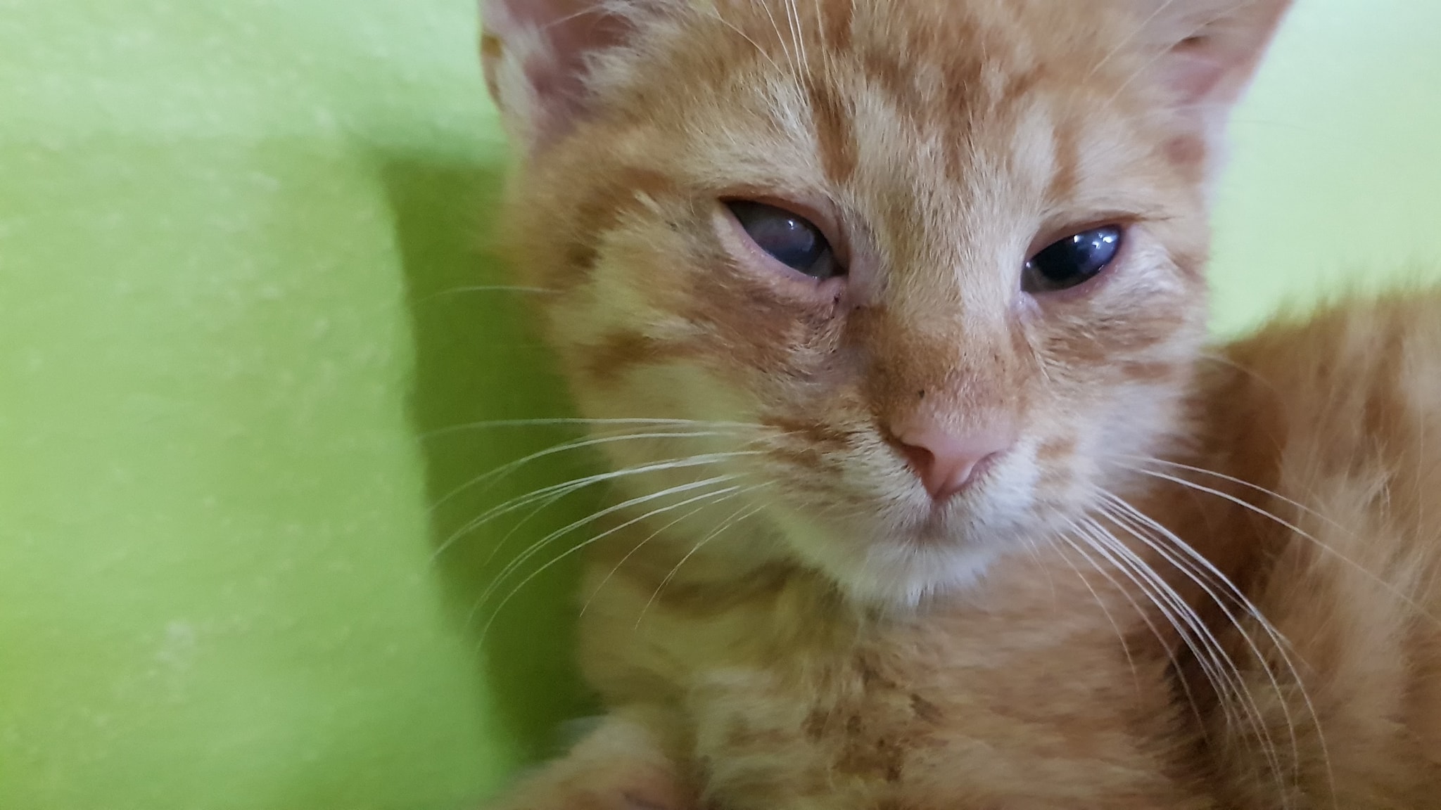 🔶Malé podzimňátko Listeček, kterého v minulých týdnech postihl ošklivý zánět spojivek, který ani veterináři snad nikdy neviděli. Spjivky měl hodně nateklé, zanícené, začaly by srůstat, antibiotické kapky nezabíraly, přistoupilo se ke kapkám s kortikoidy a hlavně je třeba kapat i desetkrát denně. Očička se už Lístečkovi otevřela, ale zánět stále trvá. Výsledkem vyšetření stěru očiček je pěkná kombinace virů: herpesvirus, calicivirus a mycoplazma. U tak malého kotěte je to tedy ohromná zátěž.