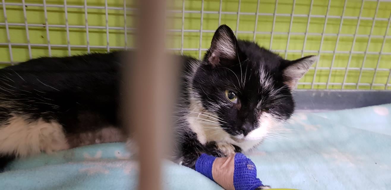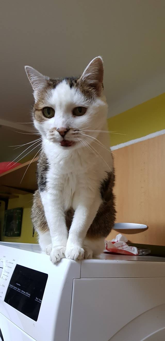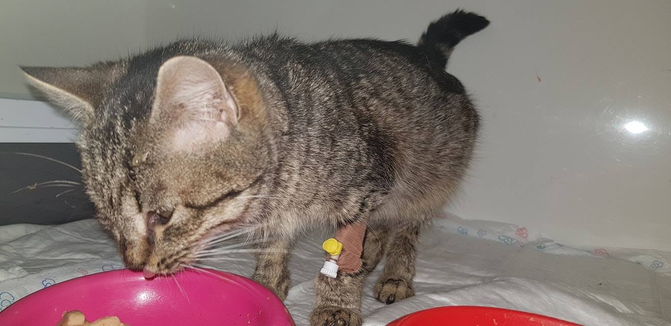 Včera jsme si dovezli z hospitalizace kočičku Calamity. Má chudinky hodně bolavou pusinku, byl jí zaveden fixační drát do spodní čelisti, má prasklé patro a ještě k tomu sešitou tkáň. Problémem je jídlo, odmítá si nechat na tlamičku i sáhnout. Calamity musí užívat dvoje antibiotika, má zavedenu sondu do žaludku. Není to jednoduché, hadička se nám ucpává, Calamity nyní trpělivě krmí Věrka stříkačkou. Rozjíst ji jen tam nepůjde, je prostě hodně bolavá. Jinak se má Calamity docela k světu, používá záchůdek, má zájem o dění kolem sebe. Musíme to prostě zvládnout.