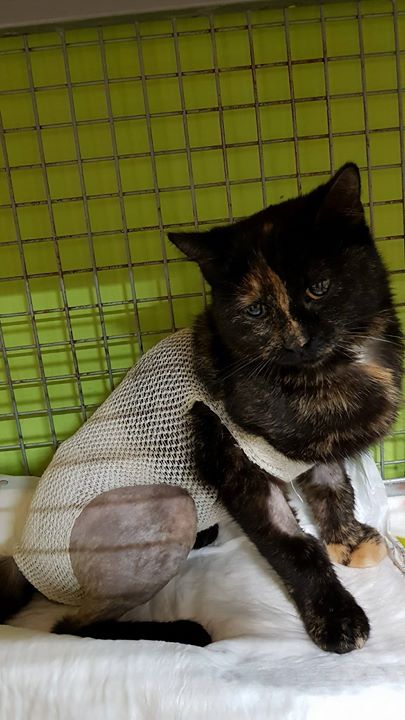 Kočička Megan je po operaci pánve. Roztříštěná část byla zahřebována a zpevněna destičkou. Megan je pohyblivější než před operací, dokáže si i sednout. Jsem moc ráda, že k operaci došlo, i když byla hodně náročná. Doufejme, že Megan bude zase běhat a nebude mít velké následky.