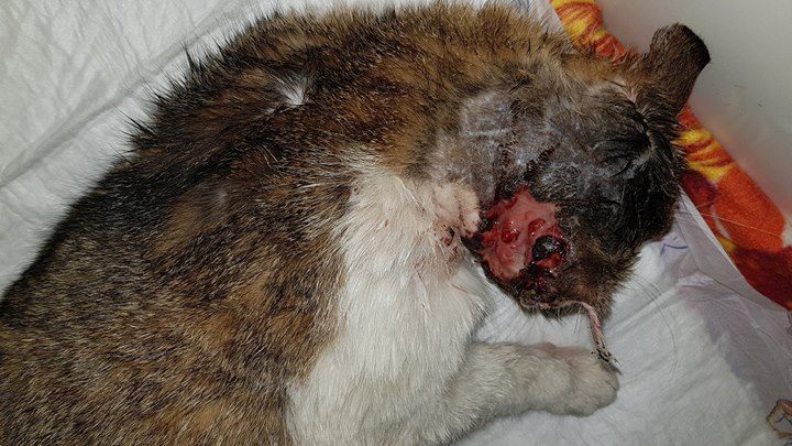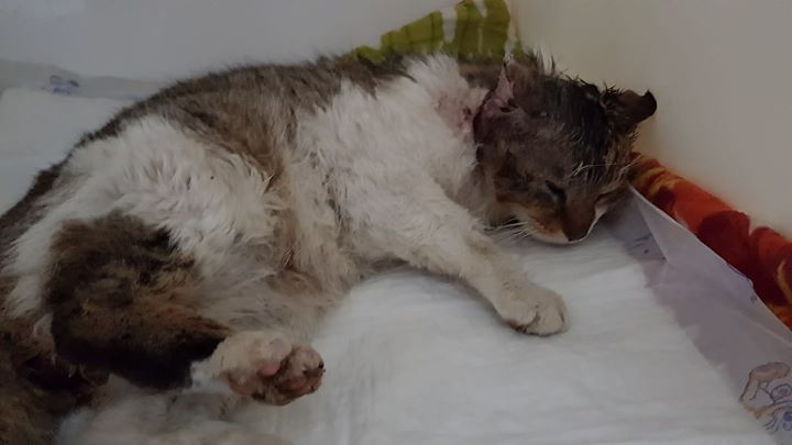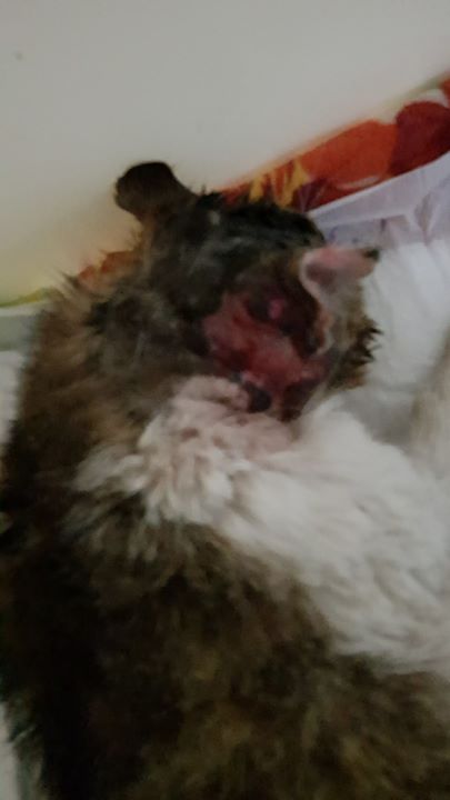 Přijali jsme bílomourovatého kocourka zraněného, plachého kocourka. Byl odchycen ve Štětí, má velikou ránu na hlavě, musel velmi trpět. Rána je zřejmě od pokousání, neošetřený abces má skoro přes půl hlavičky. Musel být ošetřen v narkóze, byl přitom byl vykasstrován a dostal dlouhodobá antibiotika. Zřejmě nezvládnu další ošetřování hlavičky, doufejme, že se bude hojit dobře. Rána je nyní vyčištěna, nyní má na hlavičce jen živé maso.