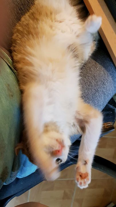 Zjistili jsme, že bílý, dlouhosrstý kocourek je necelý rok starý a jmenuje se Denýsek. Je zcela hluchý a zřejmě to způsobovalo, že byl útočný, hodně se bál a ta změna prostředí, kde jsou nyní všude kolem samé kočky. Nyní je v karanténní místnosti v kleci a ohromně se mazlí, je nádherný a moc hodný. Je již zamluvený. Půjde do nového domova též k bývalé Sluníčkové kočičce, tak snad se spolu skamarádí, jedna kočička by Denýskovi neměla vadit, zvykne si na ní a budou určitě parťáky.