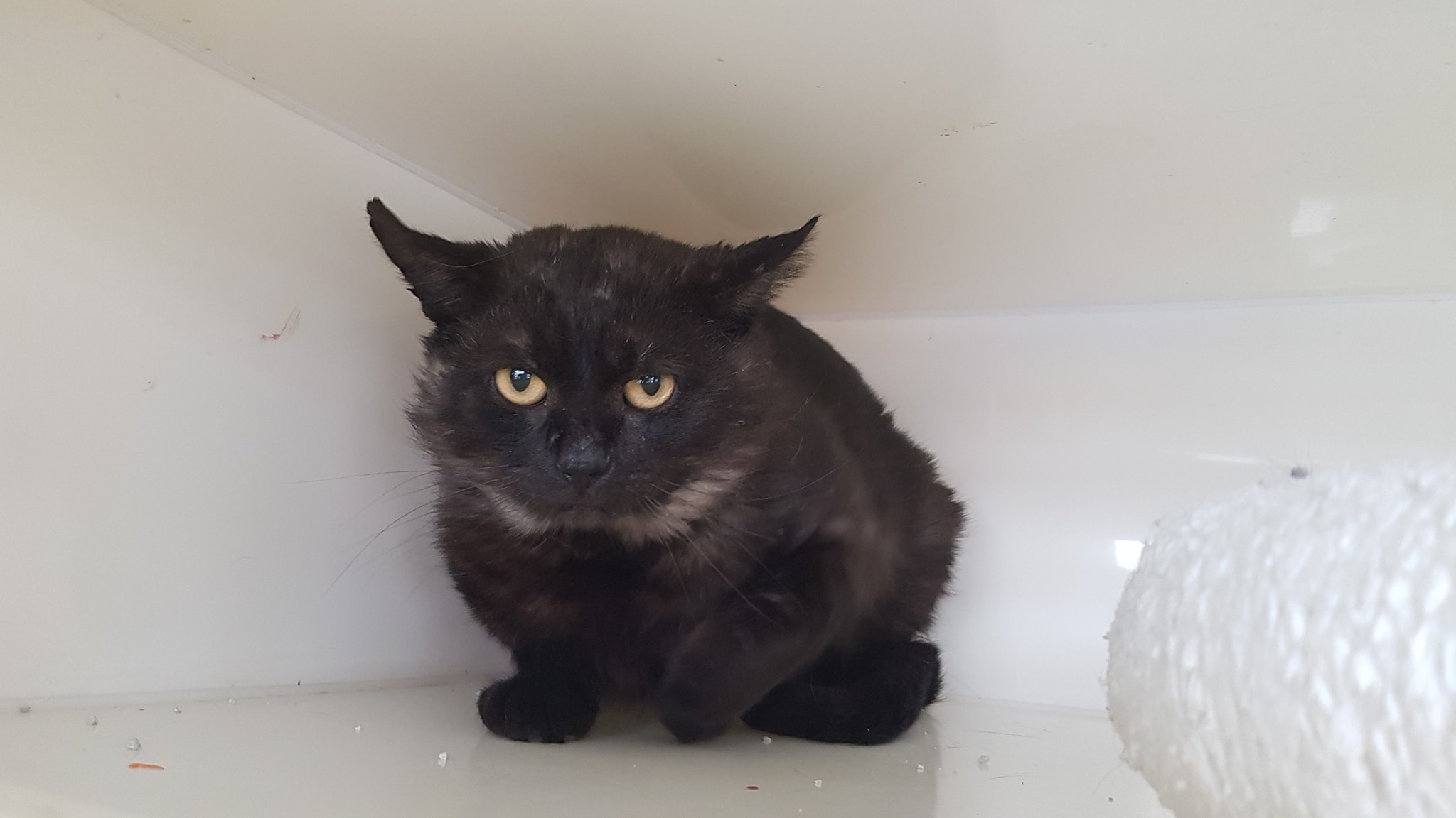 Dalším novým přírůstkem je černý kocourek z bytovek v Roudnici n.L. na Bezděkově. Kocourek žije ve sklepě bytového domu a hodná slečna ho chodí každé ráno krmit. Kocourek byl samé klíště, nyní je po kastraci, je hodný, mazlivý, nyní zvažujeme, zda bude vrácen. Uvidíme, jak bude snášet útulek, je to přece jen dospělý kocour, který nemusí být šťastný zavřený ve velkém společenství kočiček.