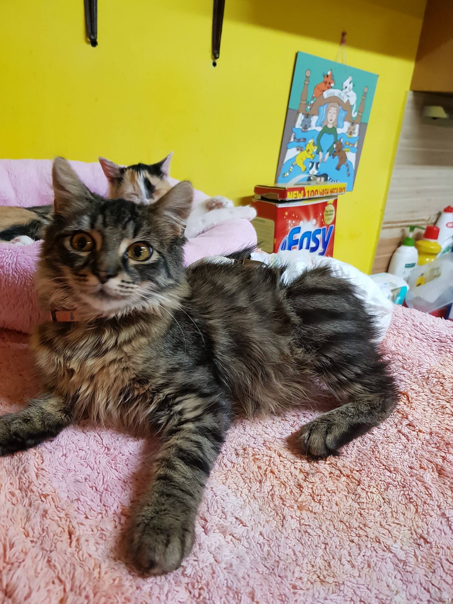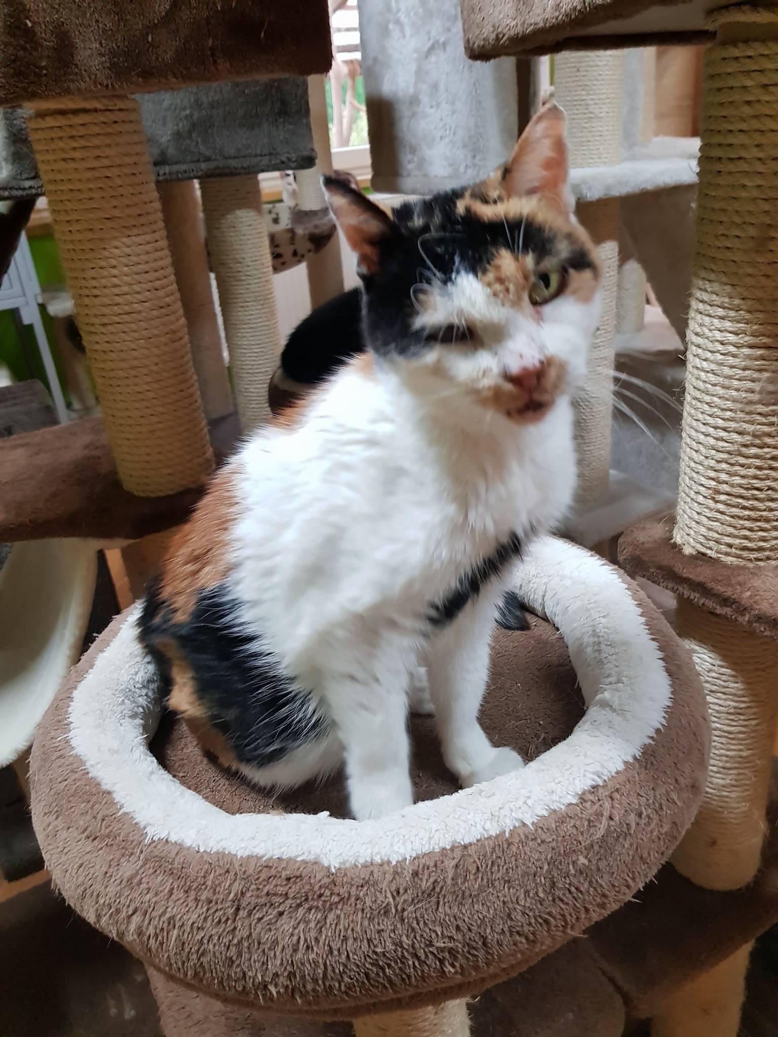 Včera, v pátek odjela i kočička Ennie Dušková. Enninku si vyhlídli na bazárku dva mladí lidé, v jejichž domově bude jako jediná kočička. Enninka si zažila na sídlišti mnoho špatného, například nakopnutí od dětí a další a další ústrky, když neměla, kam hlavu složit. To vše se v jejím tělíčku nastřádalo a při kastraci málem umřela. Nyní je z Enninky nádherná, veliká a mohutná kočička, která si strašně moc zaslouží láskyplný domov, hodně mazlení a dobrot.
