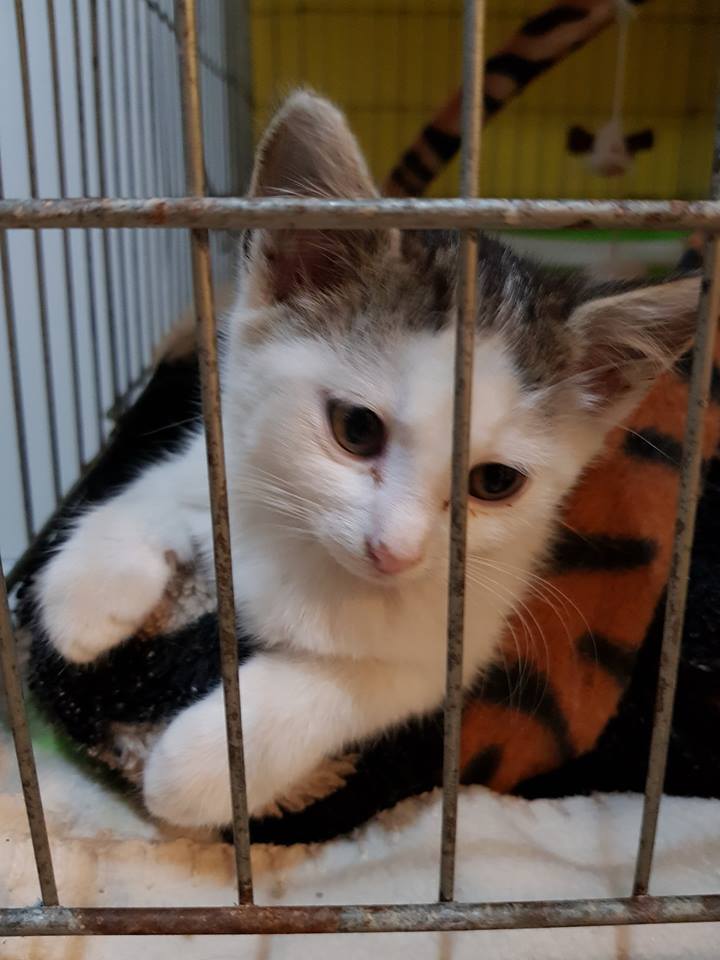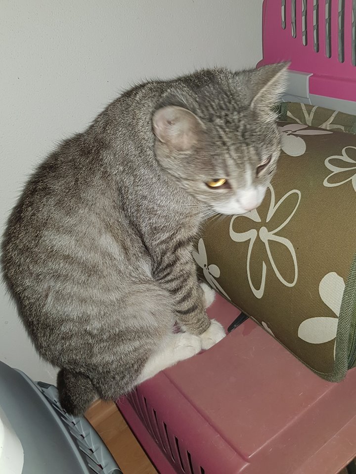 Mourovatý kocourek Mareček za týden, co jsem ho neviděla hodně zhubl a vůbec se mi to nelíbí. Očička nemá jasné a bylo mi divné, že ho není „plný dům“ jako jindy. Nyní je v kleci na pozorování a zítra uvidíme.