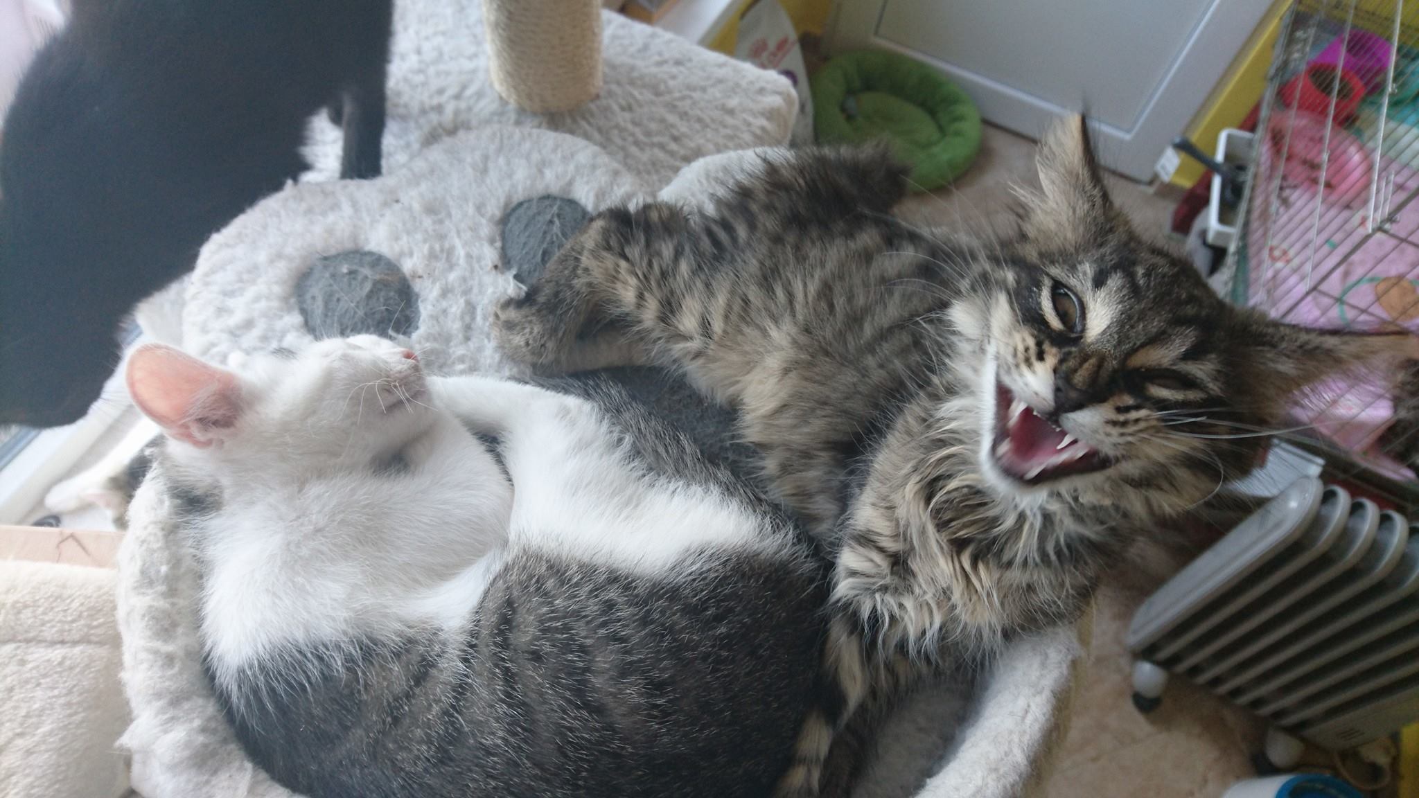 Kočička Stánička a Irenka jsou pěkné lumpice. Pořád spolu řádí a nyní se spolu i léčí, dostaly rýmu. Přitom jsou oddělené od velkého počtu kočiček. Nevadí, alespoň si nemají, co závidět. Ani jedna se nechce moc mazlit, pořád jsou někde v trapu a dělají lumpárny.