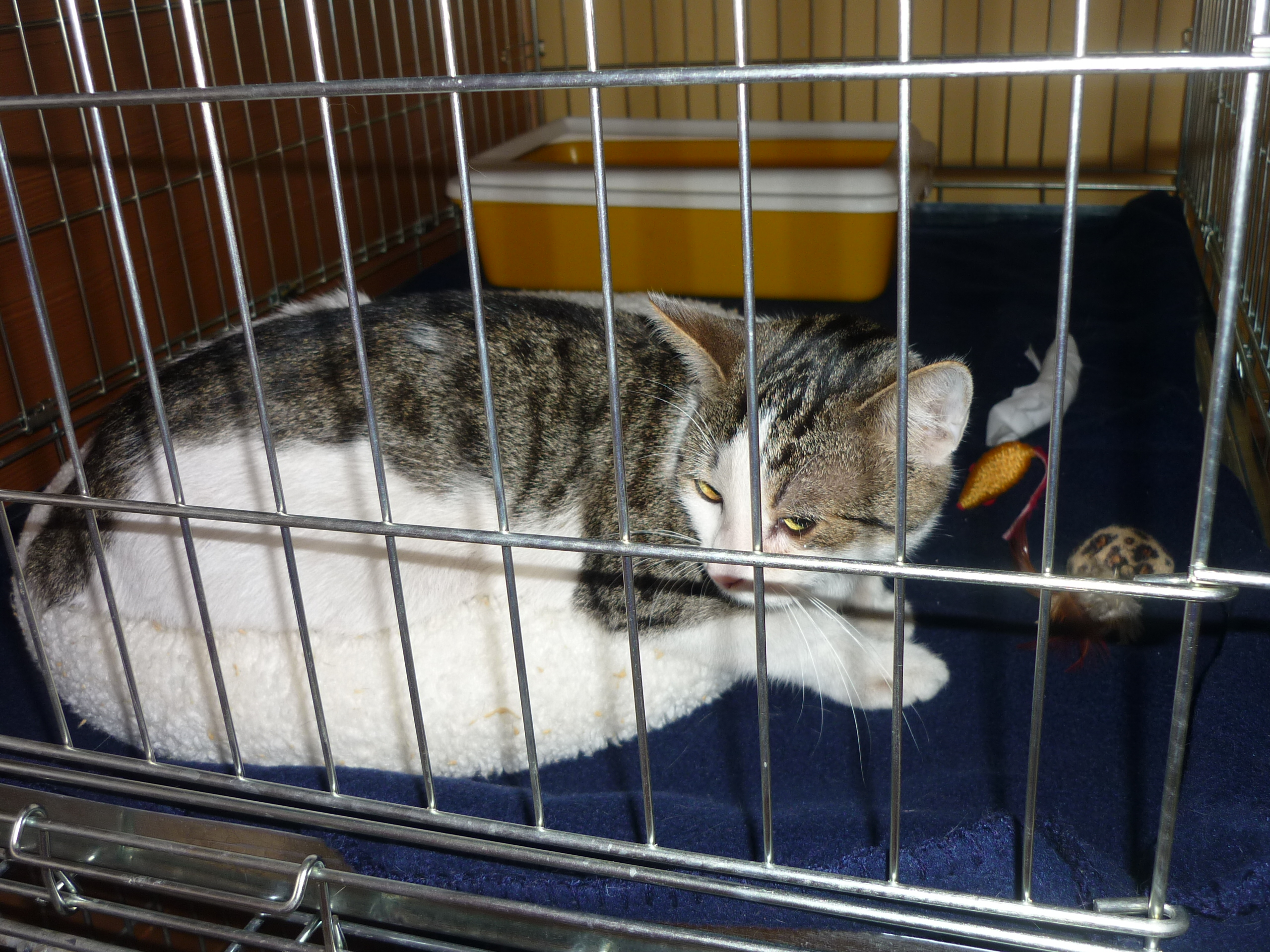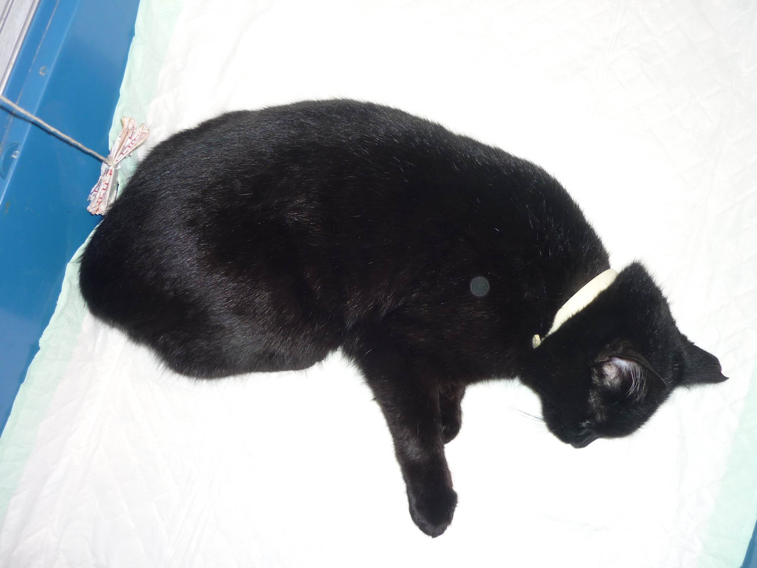 Naší Ele je už trochu lépe, dnes v poledne už i trochu jedla. Myslím, že léky brzy zaberou a Elinka bude fit. Pravidelně se mazlíme a vypadá to, že se to začíná Ele líbit. Ale nechci to zakřiknout, může to být i její nemocí.Dopoledne byl vrácen do Sluníčka Mec. Zda si ještě pamatujete, Mec byl původně vyhozen u dálnice D8, na parkovišti u Lovosic, kde je McDonald´s. Bylo to asi 5ti měsíční kotě. Do nového domova odjel 3.11.2013 ještě se stejně starým kocourkem Štěpánkem. Bohužel Štěpánek se ztratil, o tom jsme se dozvěděli asi až za tři týdny po jeho zmizení. I přes letáky a na nich slibovanou finanční odměnu, které jsme s Marcelkou Kupkovou po vsi roznesly, nikdo se neozval. Dodnes na milovaného Štěpánka myslím. Mec byl vrácen pro kousání si ocásku, byl u pana veterináře a ten mu ocásek o kousek zkrátil. Vykusování však pokračovalo dále a Mec údajně krví potřísnil celou verandu a jeho majitelé nemohou tuto situaci zvládnout. Shodli jsme se, že má Mec nějaký psychický problém. Údajně to celé začalo po kastraci. Zítra měl být Mec znovu u pana veterináře na odstranění další části ocásku. S vrácením Meca jsem okamžitě souhlasila a jeho chování mě moc překvapilo. Vrčel, nenechal si na sebe sáhnout, chvílemi se točil za ocáskem až mu z něho tekla krev. Domluvili jsme hospitalizaci na veterinární klinice, neboť vše bylo kolem Meca „divné“, zůstane v nemocnici na pozorování. První zprávy z veterinární kliniky jsou, že pravděpodobně Mecovi někdo ocásek přiskřípl, on ho hodně bolí a proto se k němu chová agresivně, bolest chce odstranit. Má velké bolesti a proto je nešťastný. Paní veterinářka říkala, že zřejmě bude stačit odstranit bolavou část – nebude se muset zatím odstraňovat ocásek celý a mělo by se mu ulevit. Takže v to moc doufáme a přejeme si, aby tato verze vyšla.