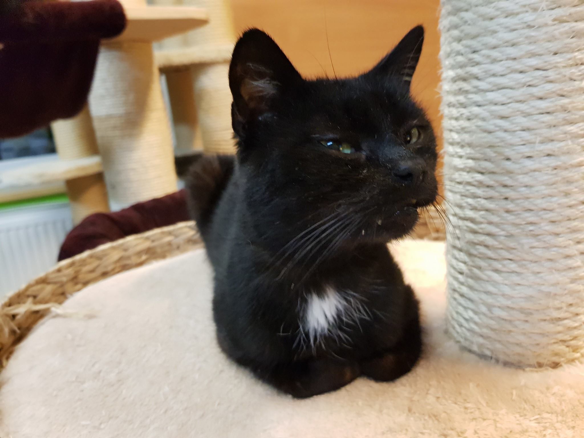 Na začátkku týdne se před 3. Základní školou v Roudnici n.L. objevil mladý, černý kocourek. Původeně jsme si mysleli, že je z čalounictví, které je poblíž. Ovšem kocourek od školy vůbec nikdy neodešel a pak se zjistilo, že do čalounictví nepatří. Kocourek je velice důvěřivý a z hlediska jeho bezpečnosti nebylo dobré tam kocourka ponechat. Nyní se jmenuje Siska a je po kastraci.