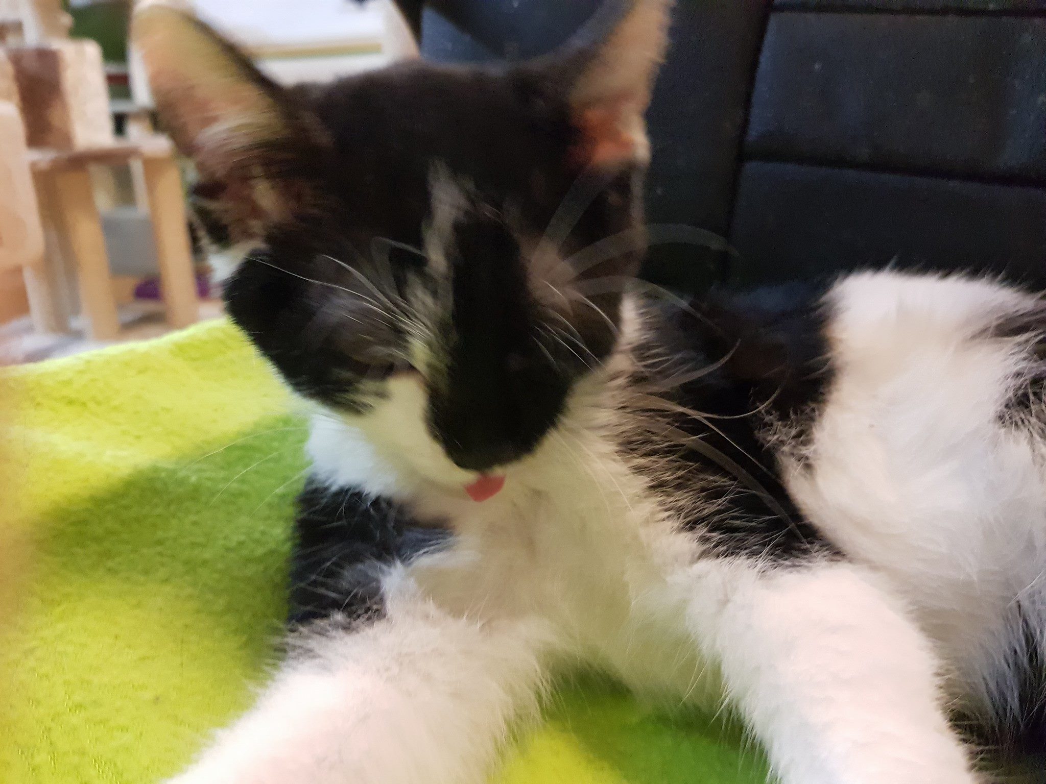 Kocourek Dobřík zvrací a má průjem. Ve Sluníčku je od pondělí. Uvidíme, jak se trávicí problémy budou vyvíjet, zatím dostal jen podpůrné léky, nikoli antibiotika.