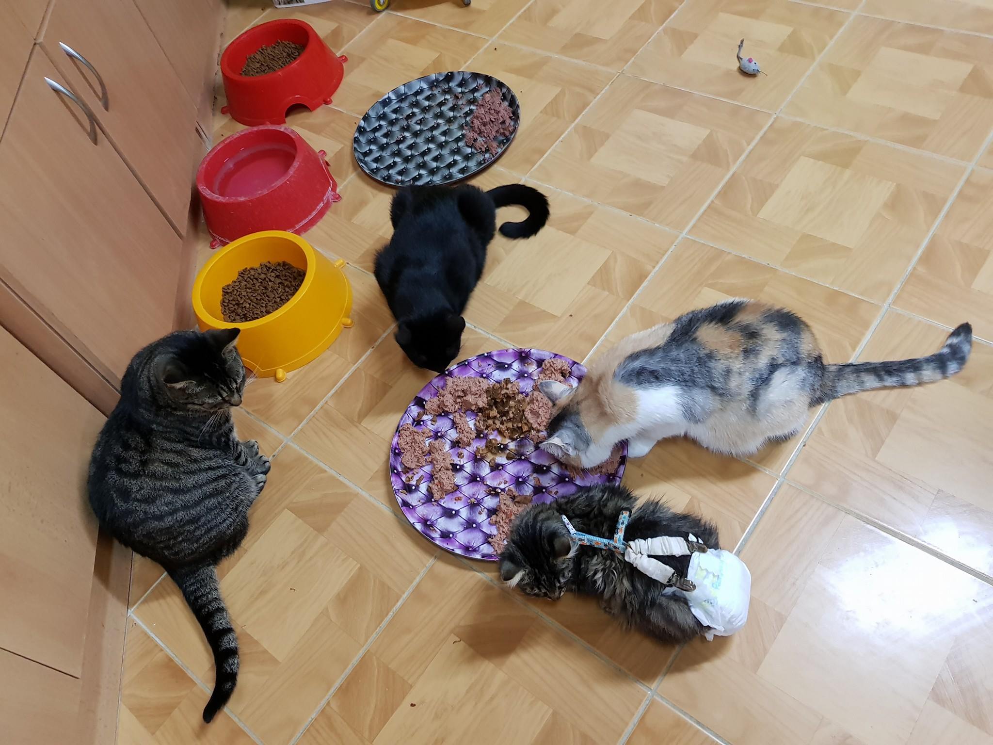 Bastíčkovi ošetřil amputovanou nožičku dá docela zabrat. Je to přece jen kus kocoura a jakou má sílu. Nedaří se mi ho zvládnout, pořád spolu bojujeme.