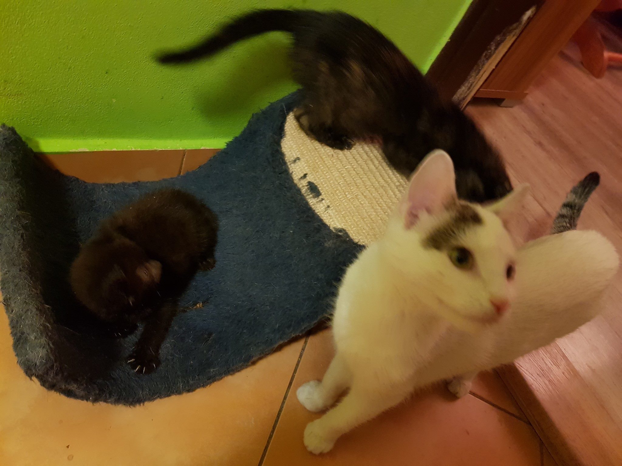 Koťata, která marodila se mají k světu. Bodásek má krásné hovínko a už i kulaté bříško. Bursinka se konečně vykakala a dobře baští.
