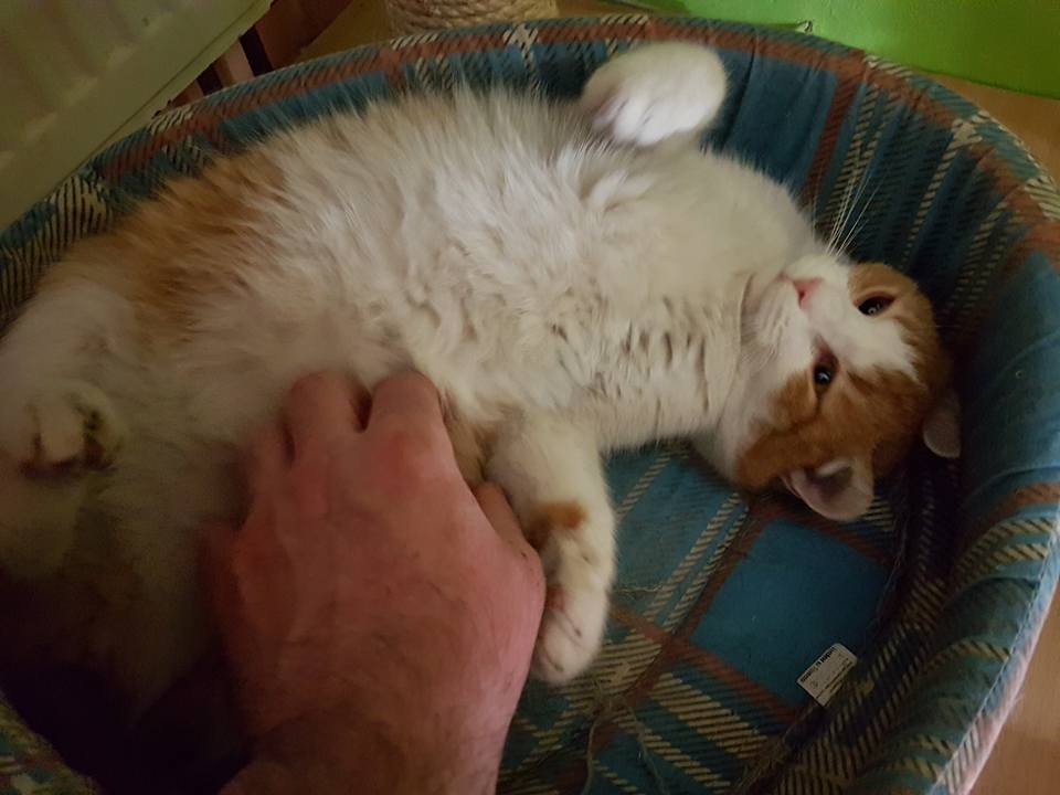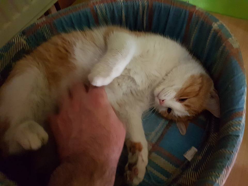 Neděle navazovala na včerejší plesovou noc, kdy jsme si přijezli dredatého mourovatého dlouhosrstého kocourka Colomba. Bylo ho třeba ostříhat, nebo jeho záda byla jedna celistvá deka z chlupů a vadila mu v pohybu. Téměř půl dne jsme se věnovali oholení dredů Colombovi, náš strojek na to nestačil, pomohla nám vlastním strojkem paní MVDr. Tešnarová, která rovnou Colomba vykastrovala. Je to strašně moc hodný a trpělivý mladý kocourek.