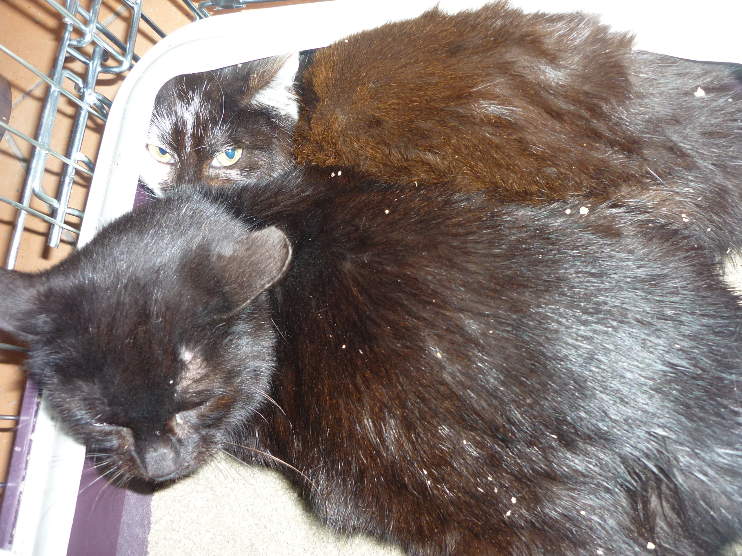Konečně se podařilo odchytit dvě ze tří kočiček v Lovosicích v zahrádkářské kolonii pod Lovošem. Zasloužili se o to moji rodiče, kteří tam mají zahradu, kde jsme v minulosti nechali vykastrovat kočky, které se tam nacházeli. Nyní však zase přibyly další tři kočičky. Je to děs. Kočičky jsou mazlivé a asi se již nebudou vracet zpátky, neboť jsou mladé a není pro ně zajištěno pravidelné krmení. Bohužel jedna kočička je černá, jmenuje se Suzí, druhá je černobílé polokotě a jmenuje se Sandy. Zítra absolvují kastraci. Třetí kočička, kterou se ještě nepodařilo odlapit je také černá.
