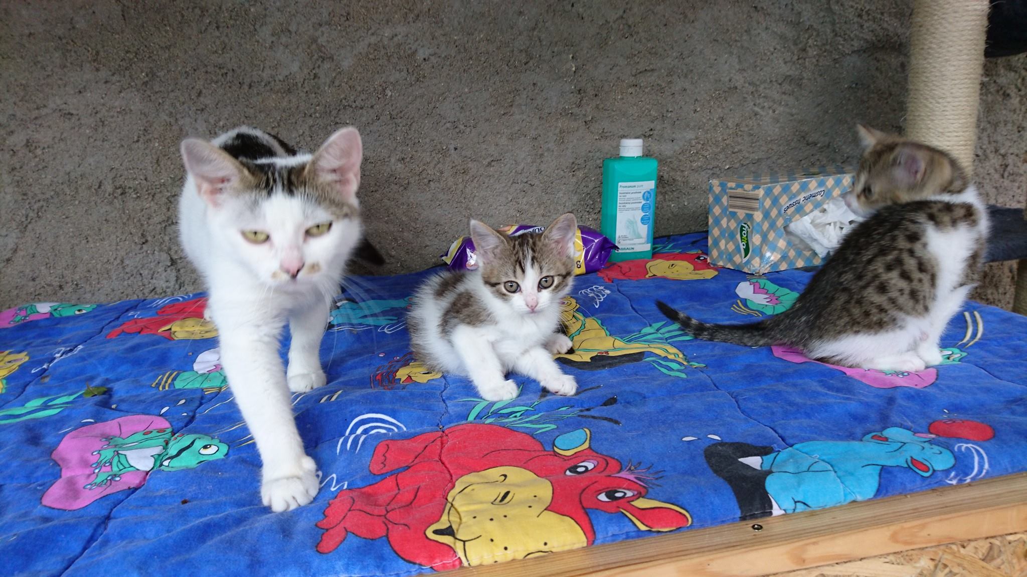 Mimina Andromeda a Perseus je hodně zlepšují. Rýma je už fuč, jen očička hlavně Andromedy nejsou zdravá. Koťátka se však mají čile k světu, jsou kontaktní, hrají si a konečně sami baští.