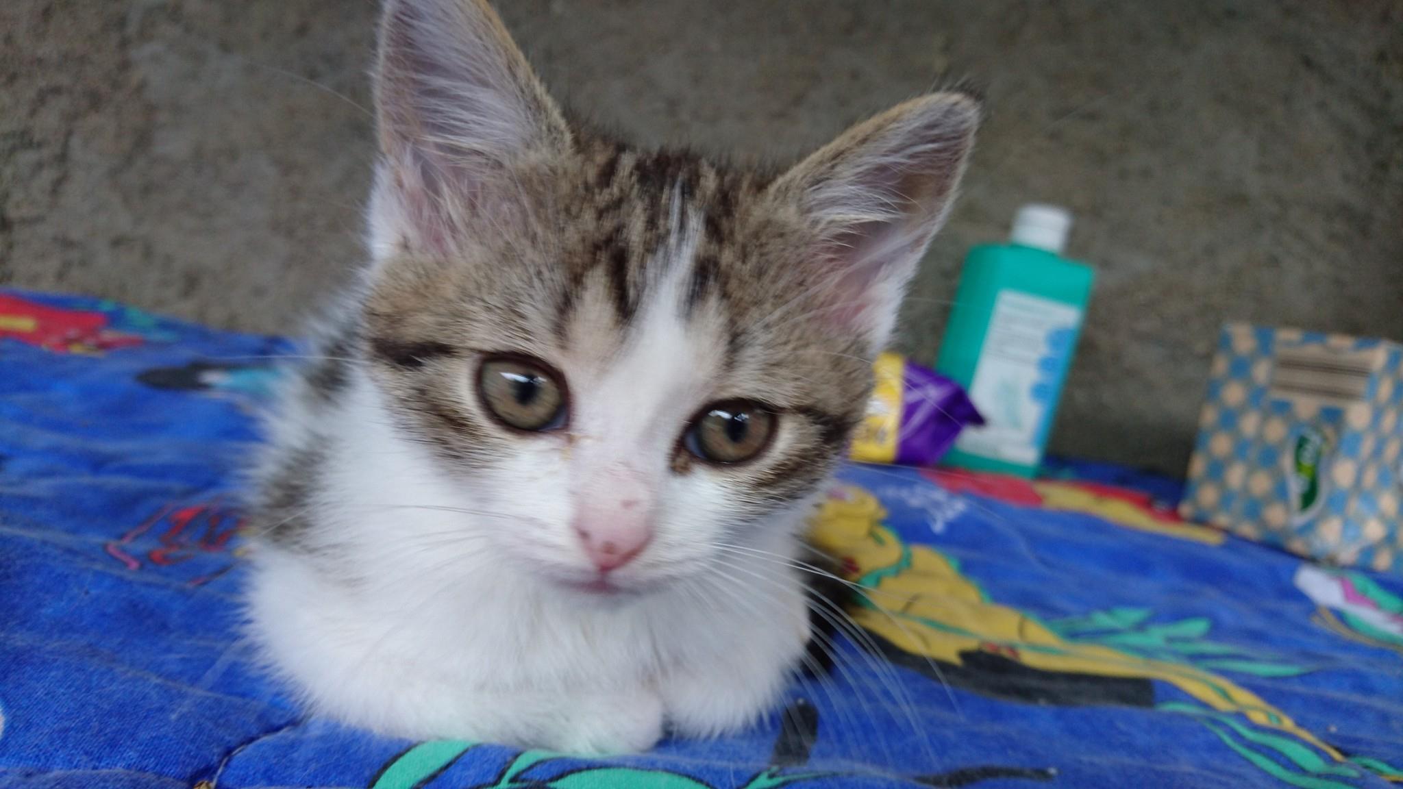 Aby toho nebylo málo, přijali jsme odchycené kotě opět s nemocnýma očičkama z Vědomic. Je to černý chlapeček, byl odchycen ve Vědomicích, jeho maminku a sourozence se ještě odchytit nepovedlo. Jsou tam ještě dva sourozenci odchyceného koťátka. Nejsou to už úplná mimina, takže jejich odchyt už není jednoduchý.