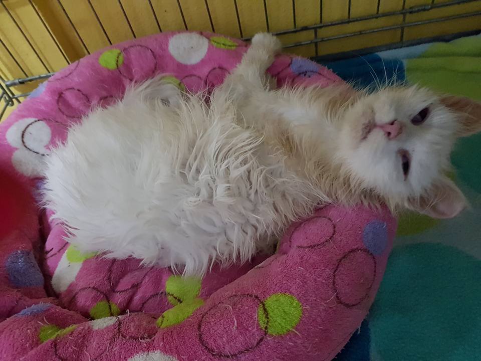 Velmi špatně na tom byl mrňátkový černý kocourek Barbánek. Pořád jen spal, byl apatický, měl horečku a to i přesto, že užíval antibiotika. Byla mu vyměněna, dostával vitamíny a je už o hodně lepší. Upřímně jsem v tom už nevěřila. Od té doby, co přišel prochladlý a vyzáblý do Sluníčka, je to takové křehoučké stvoření, které je třeba stále sledovat a dokrmovat.