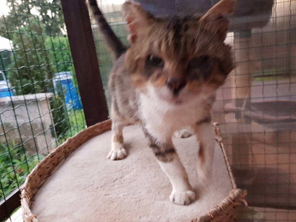 V zadní voliéře po kočičkách s Felv je kočička Pipa, která toli nesnáší ostatní kočky. Dneska na mě čekala před voliérou Matylka, Pipa vystartovala a vyhnala jí, ale před tím ji tloukla. Když byla Matylda pryč, nechala se Pipa zavřít zpátky do voliéry. V druhé části voliéry je nový kocourek prášek z Přestavl. Má pořád špatné pravé očičko, měl ho poškozené vředem. Mažeme a podáváme léky.