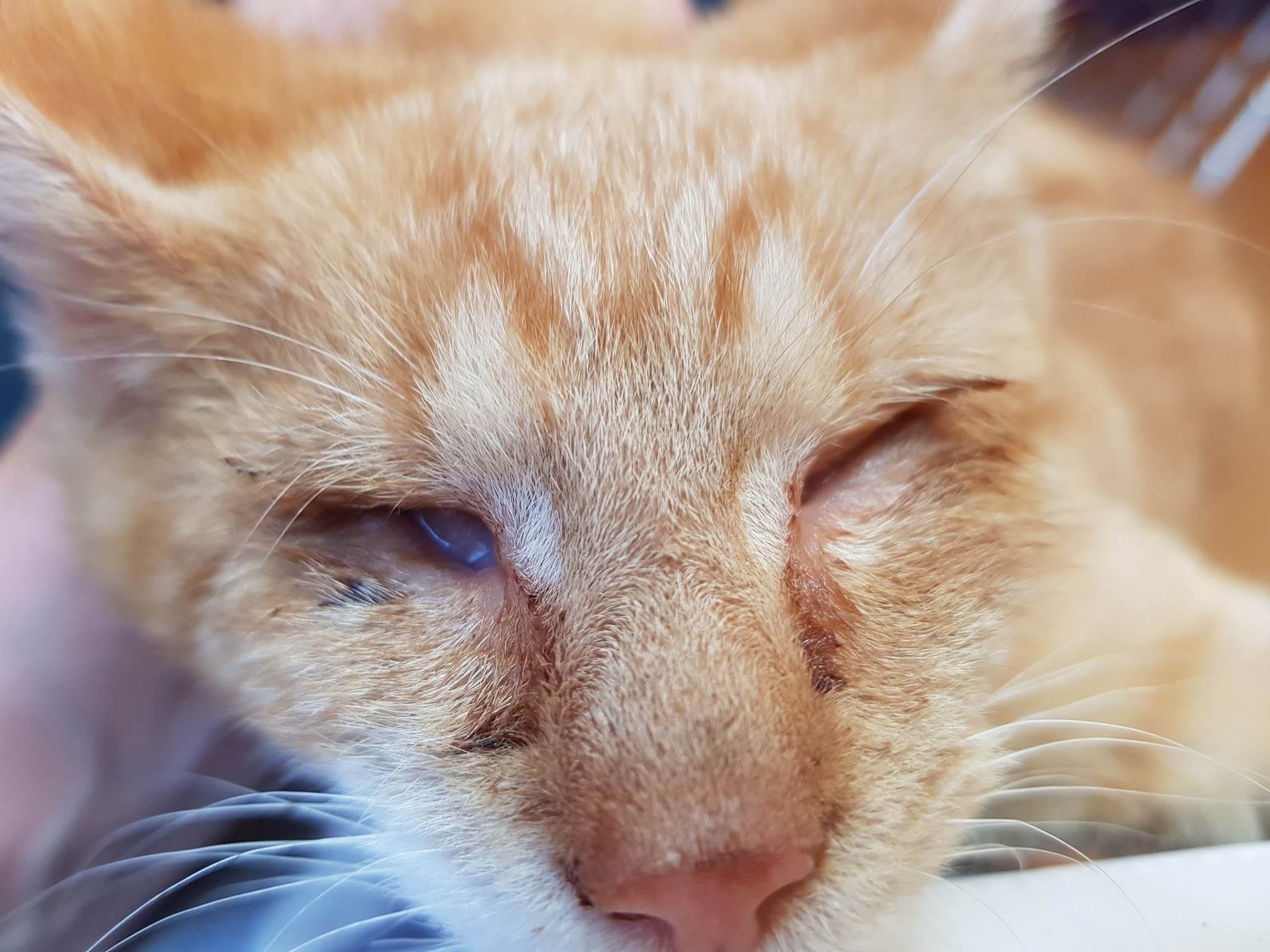 Dnes jsme přijali rezavého chlapečka bez očiček. Obě očička má vyteklá po infekci, zřejmě prasklém vředu. Zase ta rýma. Je z lokality, kde je těžké přesvědčit lidi o kastracích a i v případě, že je uhradíme. Je jim utrpění koťat úplně jedno, je to příroda, nic neřeší. Tenhle drobeček se potácel po statku, tedy spíše byl pořád na stejném místě, blízko misky s mlíkem, nedokázal si najít jídlo, které tam kočičkám někdo hodil. Dostal se pouze k nalitému mléku. Snažíme se vykastrovat dospělé kočičky, snad už je to povoleno. Tohle zoufalé koťátko dostalo jméno Luciánek, když je z Loucké, jsou mu necelé čtyři měsíce. Nejprve se tři týdny bude léčit rýma antibiotiky a čistit a mazat oční důlky, spojivky. Až bude Luciánek vyléčený, oční důlky se mu sešijí, aby zbytečně neslzely a netvořily se na spojivkách záněty. Kromě očiček má Luciánek i svrab v ouškách.